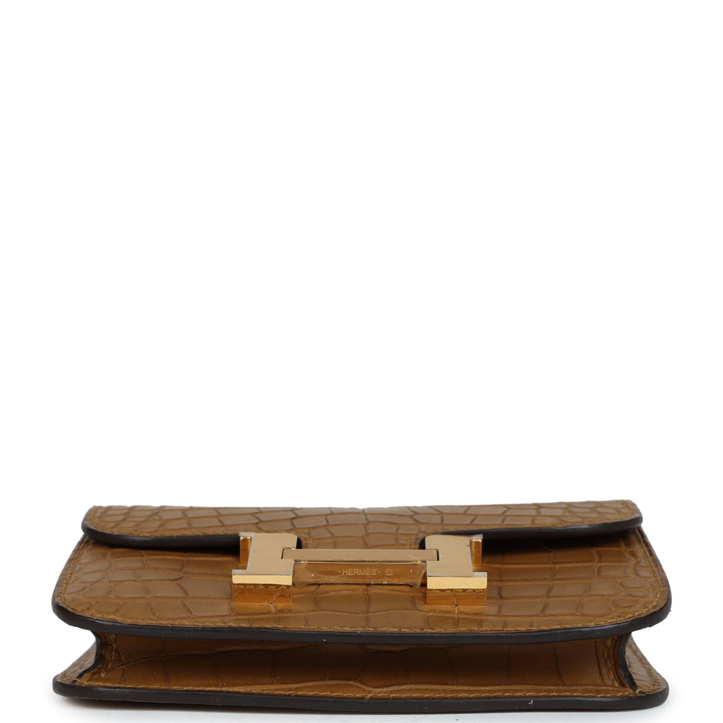 Hermes Constance Slim Wallet Kraft Matte Alligator Gold Hardware