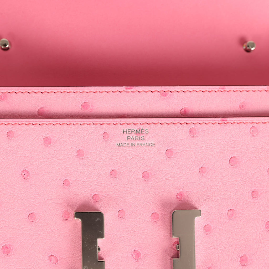 Hermes Constance To Go Wallet Bubblegum Ostrich Palladium Hardware