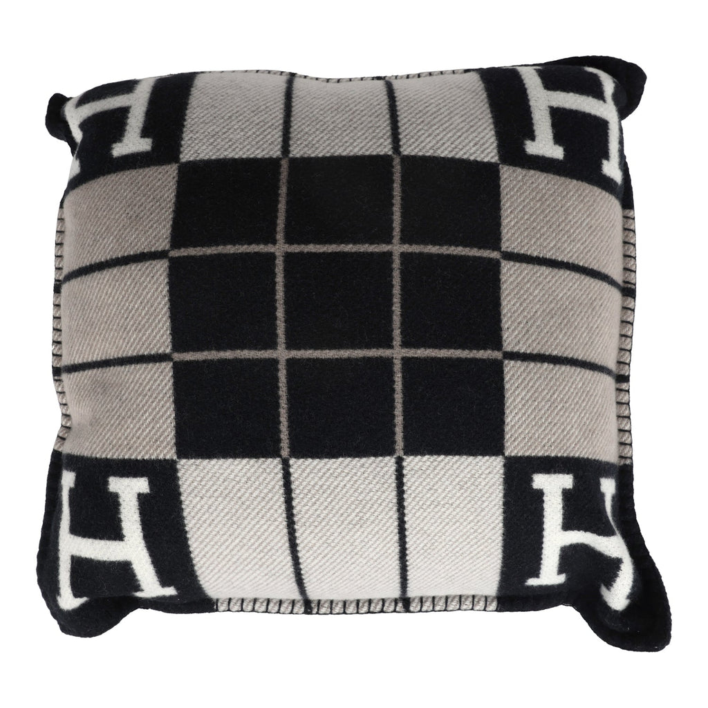 Hermes "Avalon III" Signature H Cushion PM Ecru and Gris Fonce Set