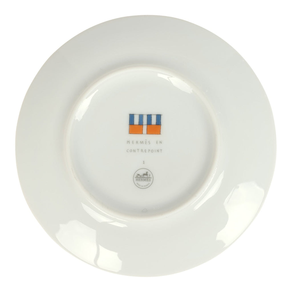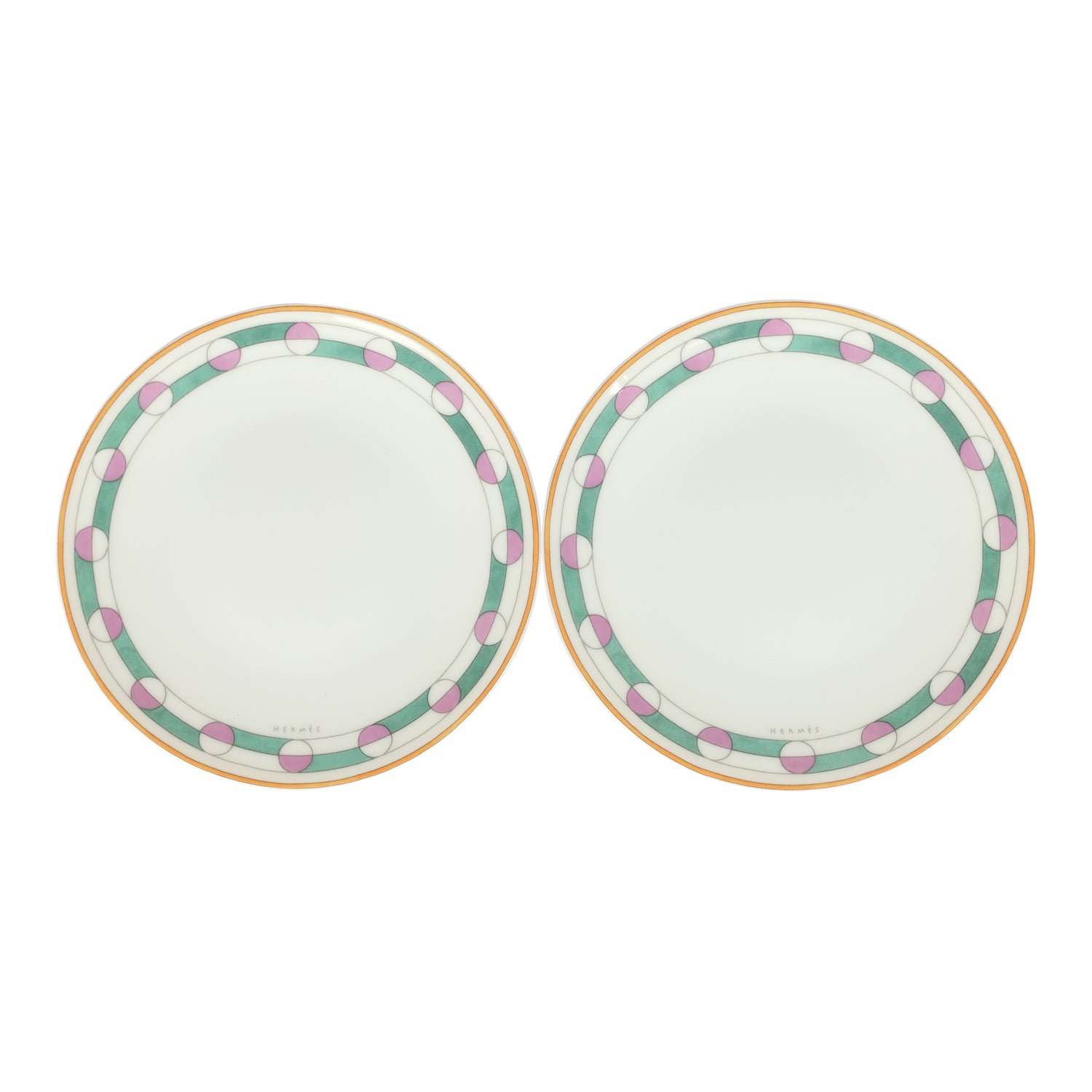 Hermes En Contrepoint White, Pink, Green Porcelain Bread and Butter Plate Set of 2