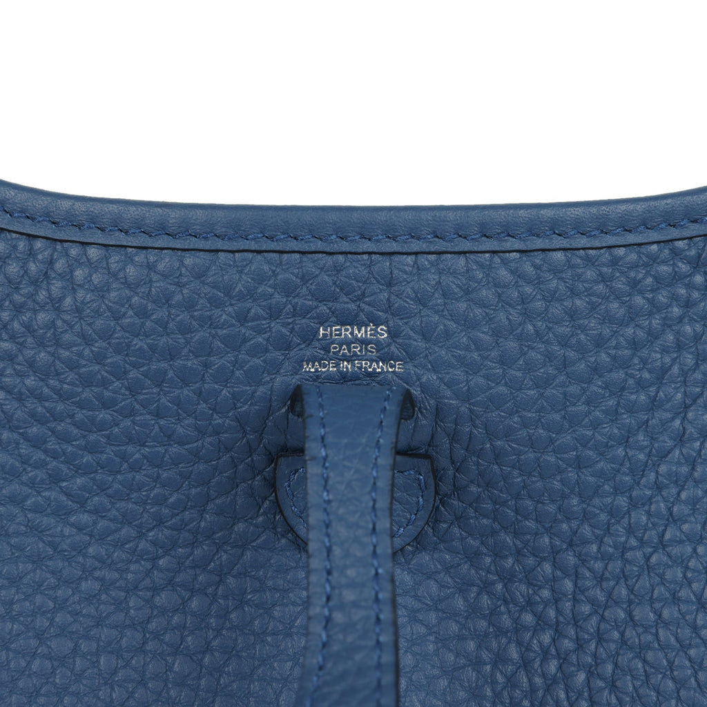 Hermes Evelyne TPM Bleu Tie Clemence Palladium Hardware