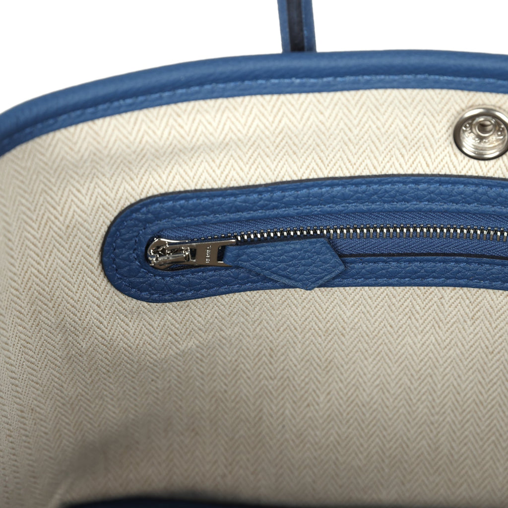 Hermes Garden Party Neo 23 Bleu Tie Togo Palladium Hardware