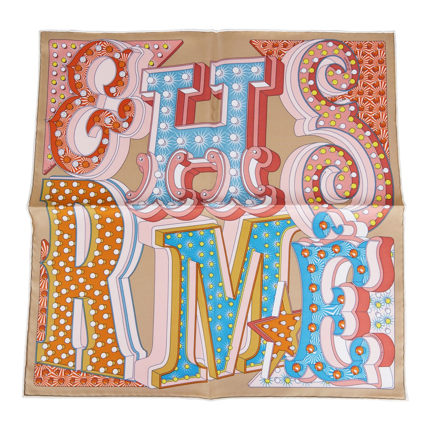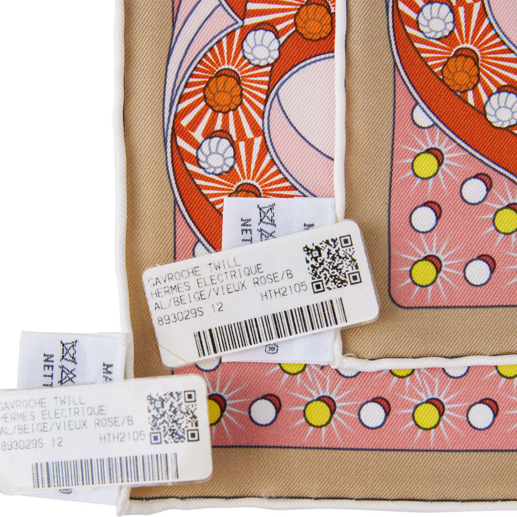 Hermes "Gavroche Electrique" Beige Silk Pocket Square Scarf 45cm