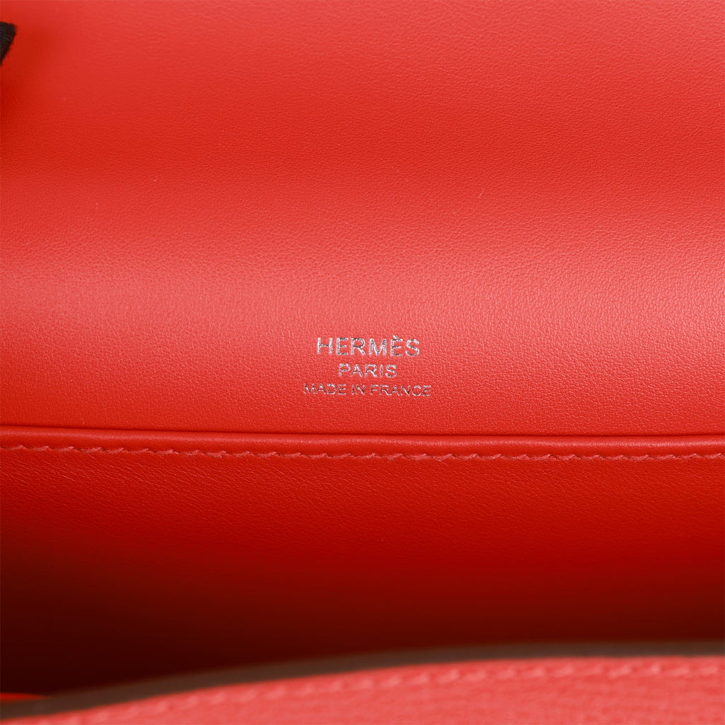 The interior is lined with Capucine leather with one slip pocket on the back wall and two slip pockets on the front wall.
