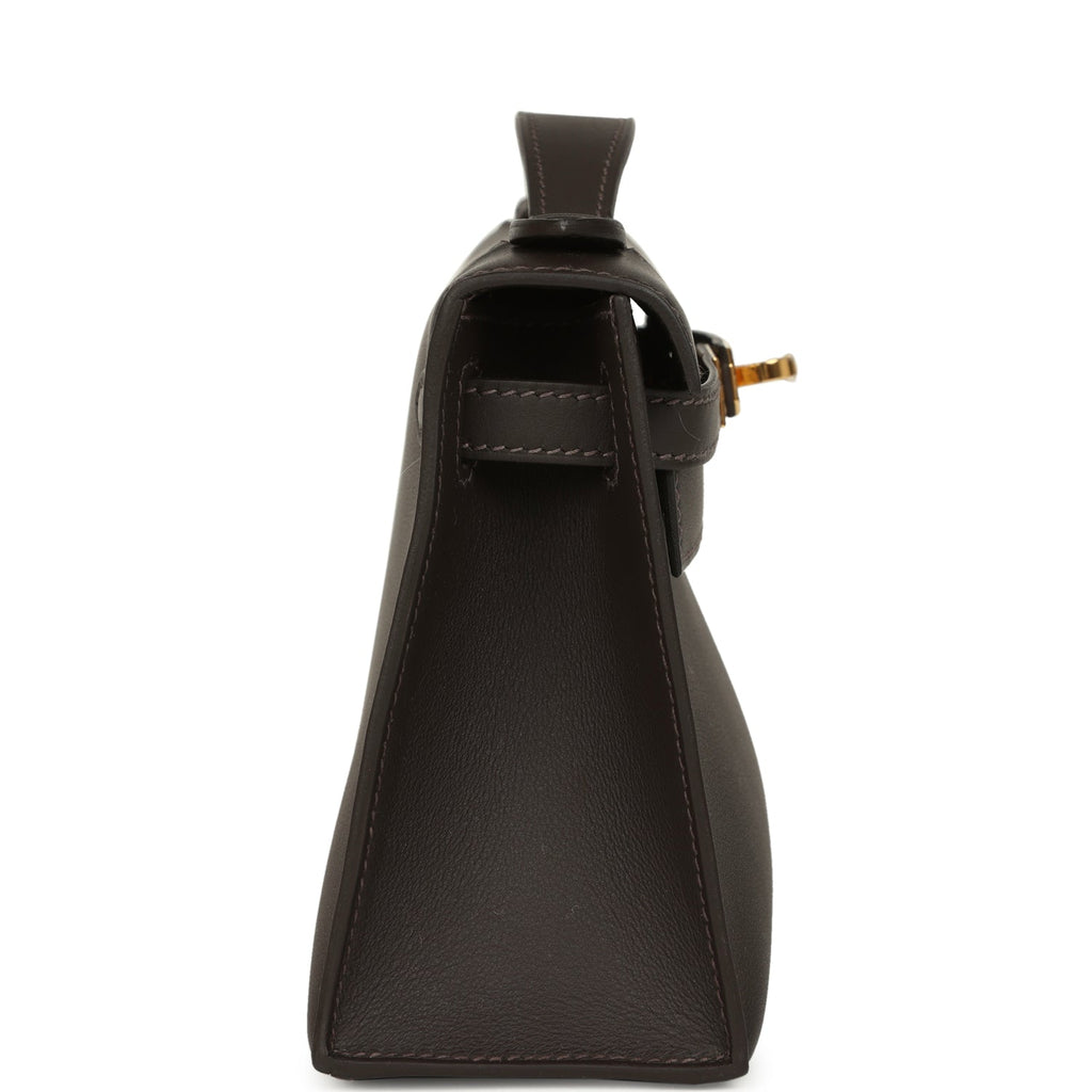 Hermes Kelly Pochette Bai-Brun Swift Gold Hardware