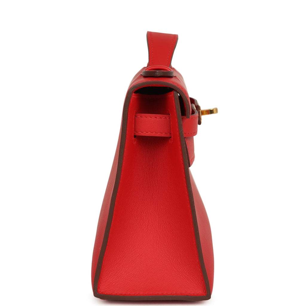Hermes Kelly Pochette Rouge Radieux Swift Gold Hardware
