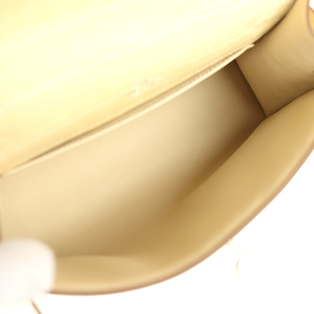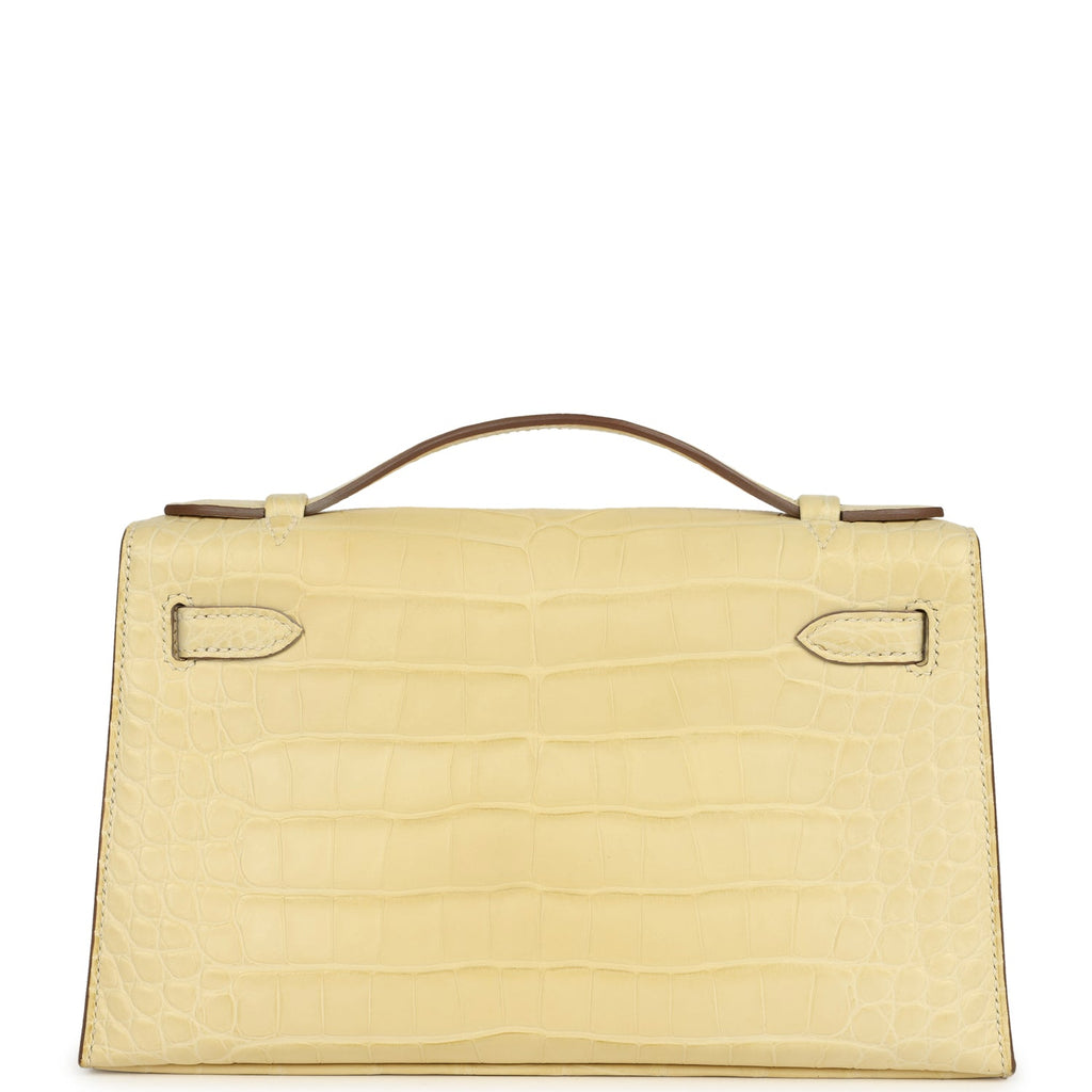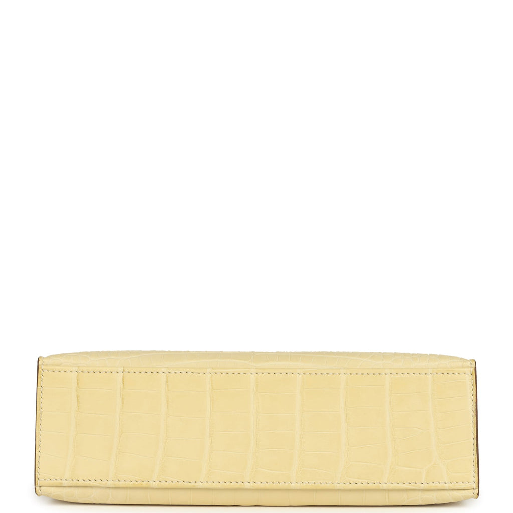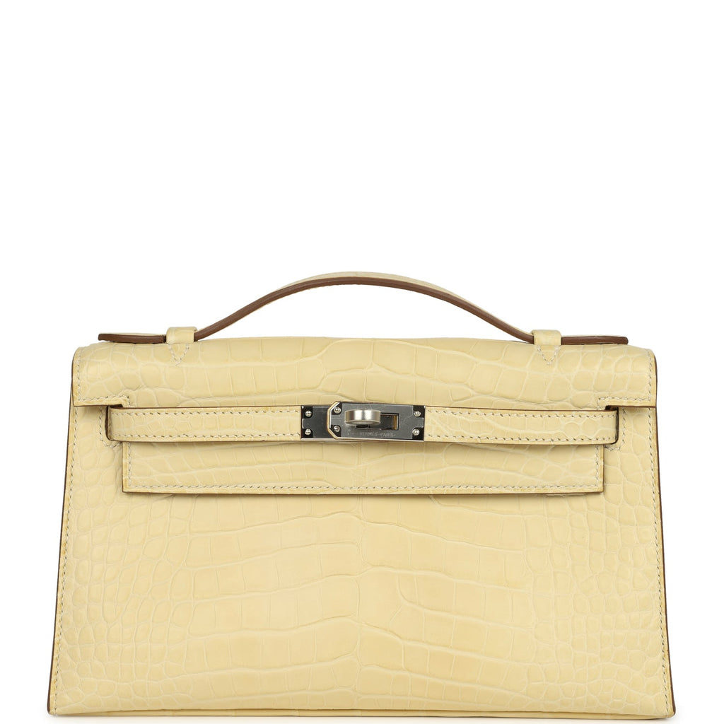 Hermes Kelly Pochette Vanille Matte Alligator Palladium Hardware