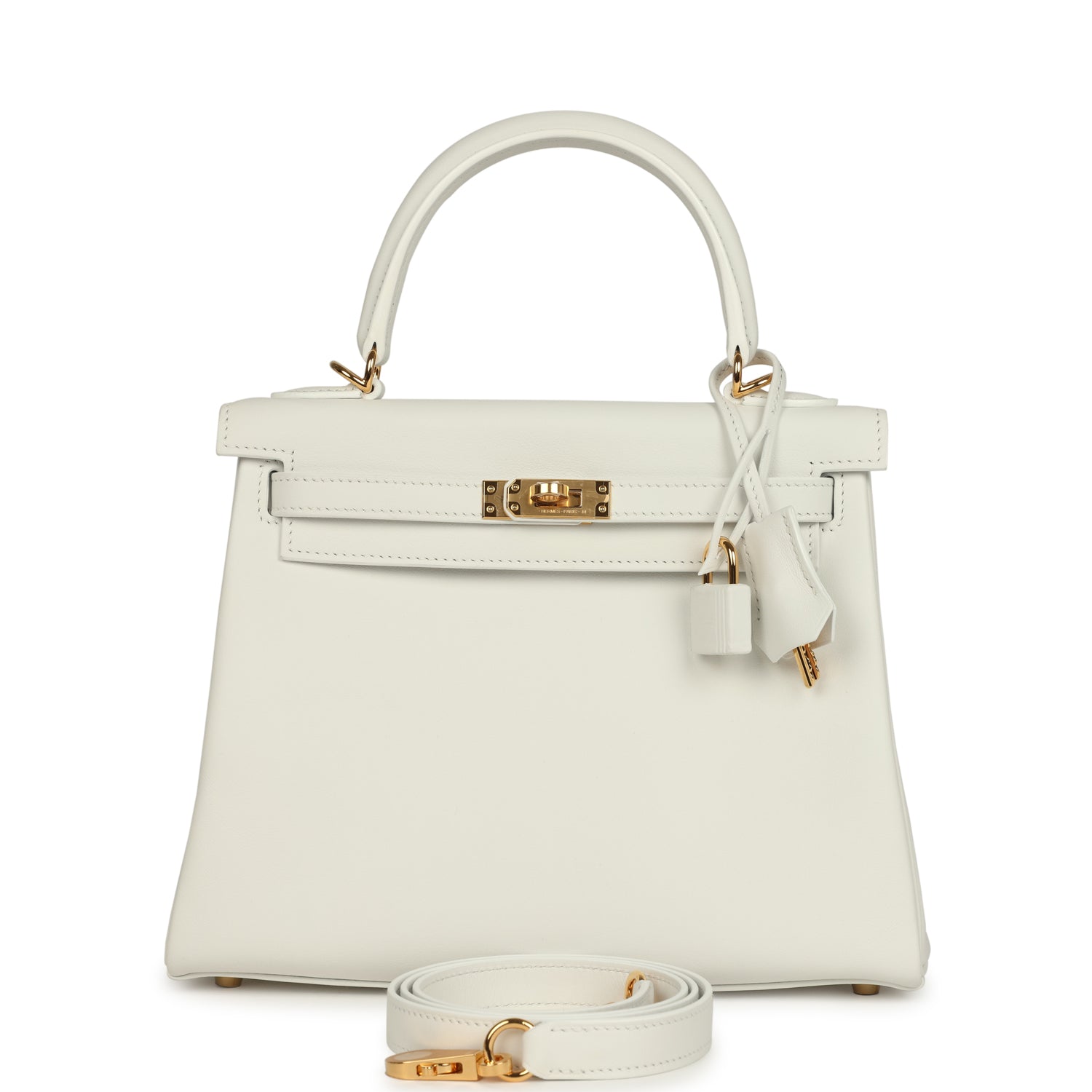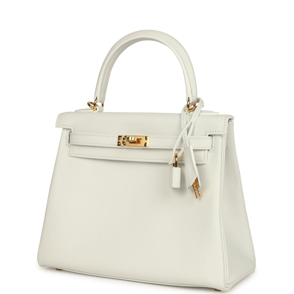 Hermes Kelly Retourne 25 New White Swift Gold Hardware