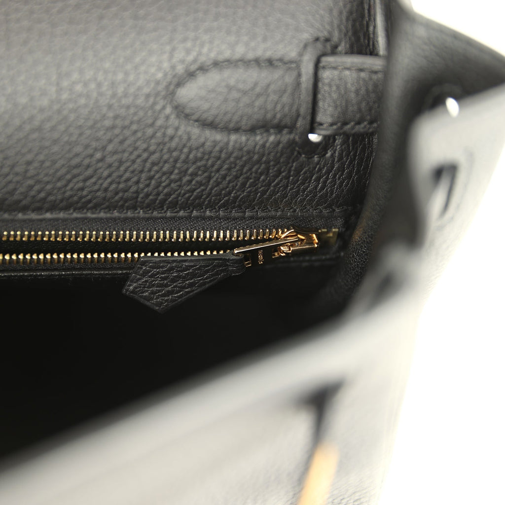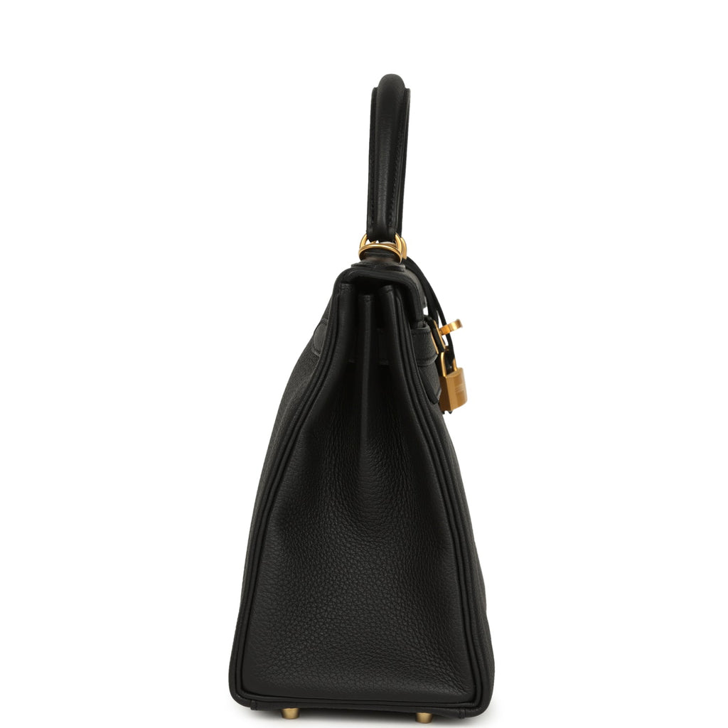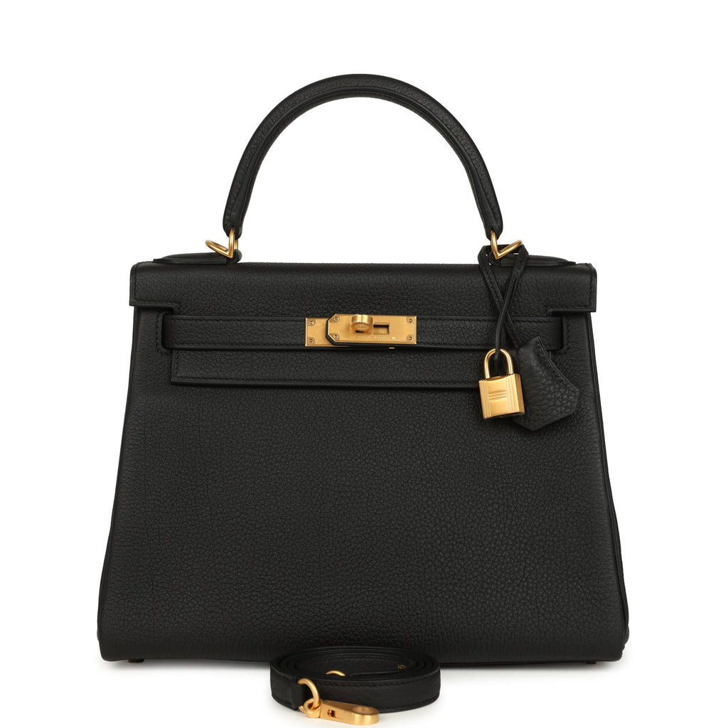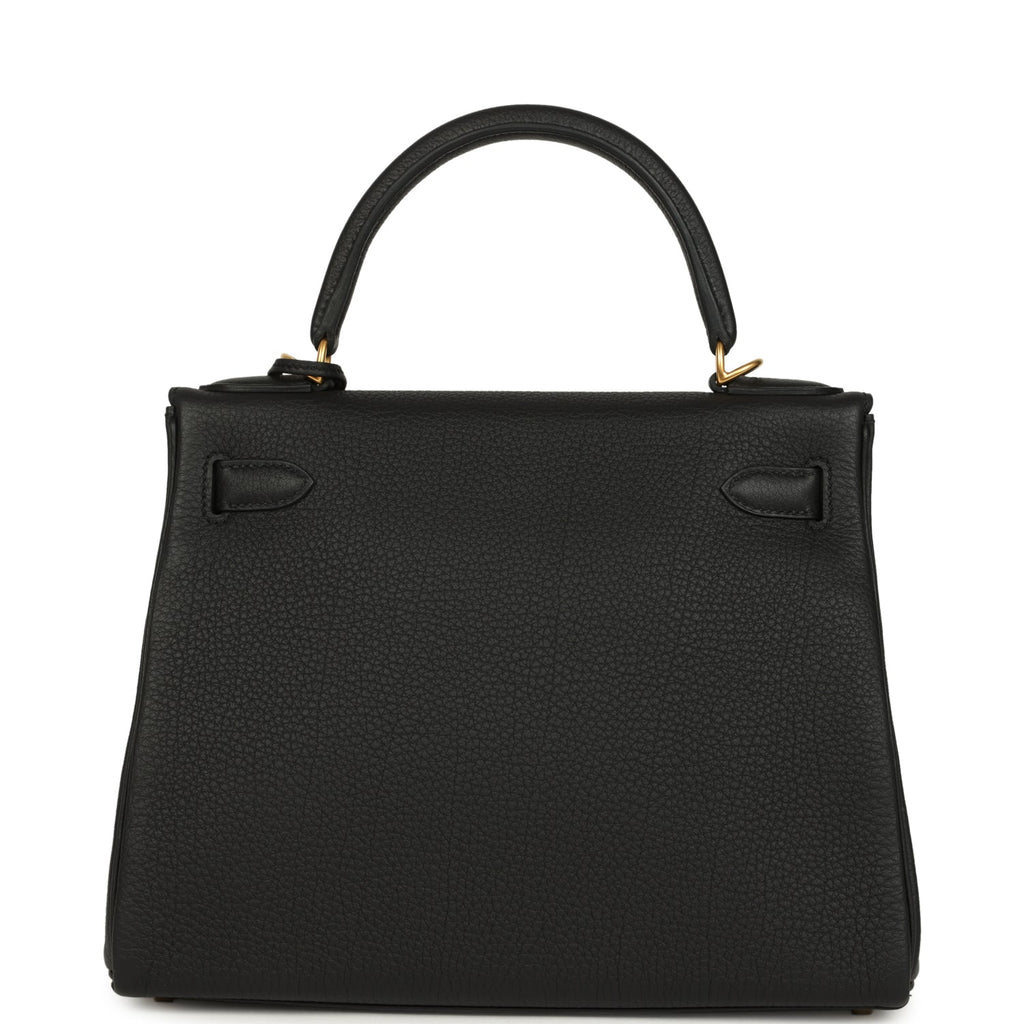 Hermes Kelly Retourne 28 Black Togo Brushed Gold Hardware