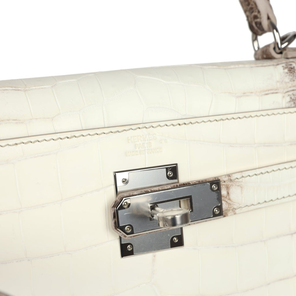 Hermes Kelly Retourne 28 Himalaya Matte Niloticus Crocodile Palladium Hardware