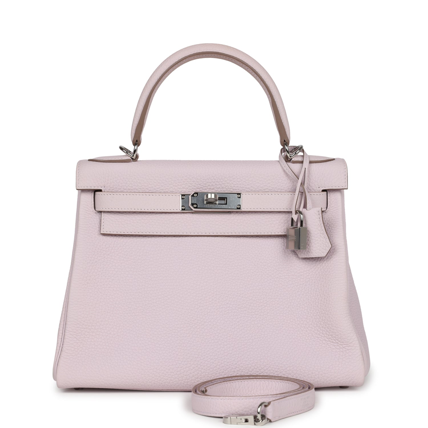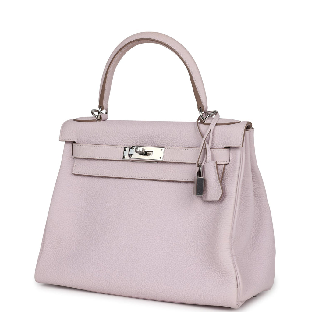 Hermes Kelly Retourne 28 Mauve Pale Clemence Palladium Hardware