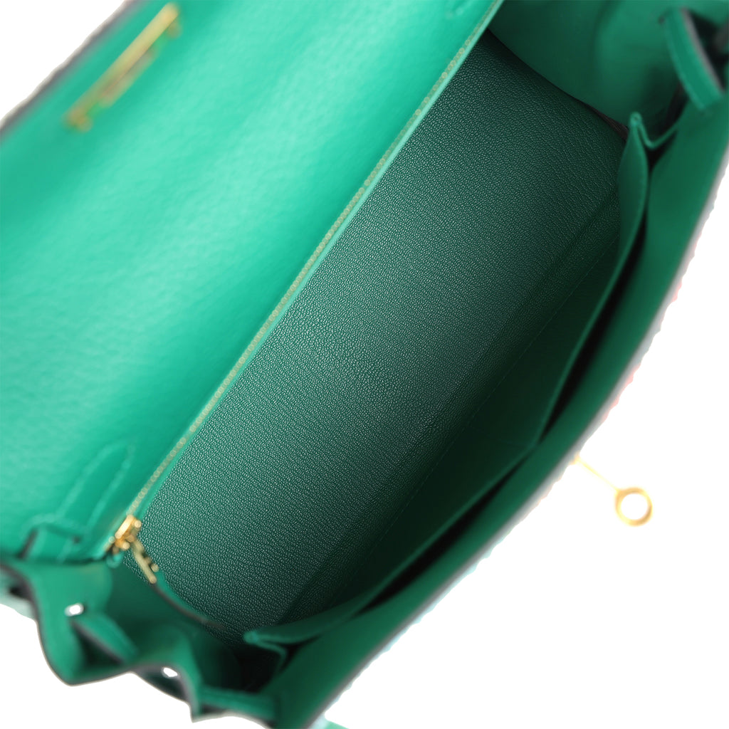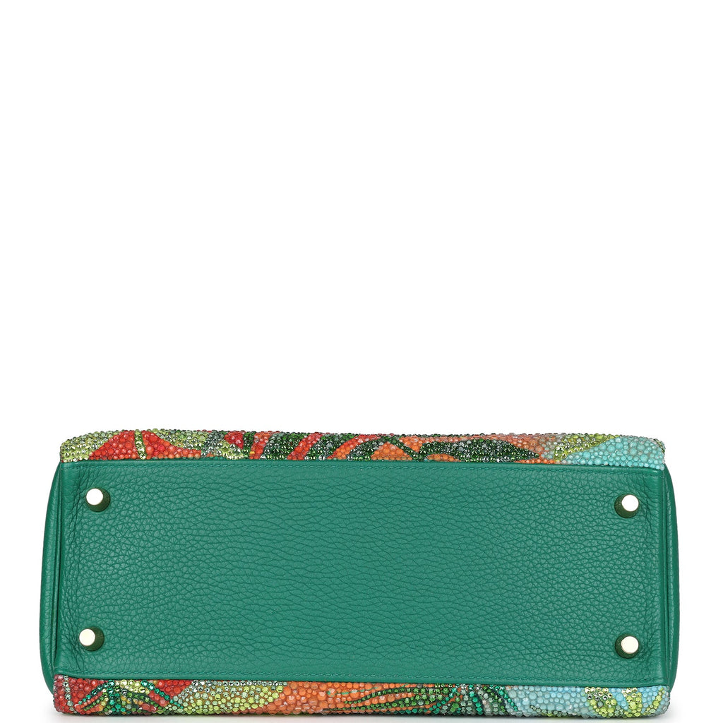 Custom Tropical Swarovski Crystal Hermes Kelly Retourne 28 Vert Vertigo Clemence Gold Hardware