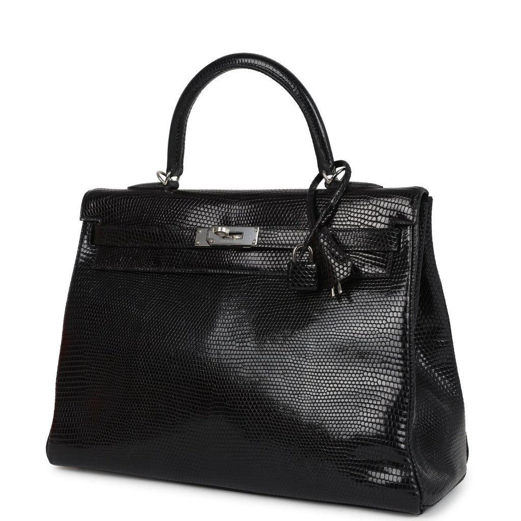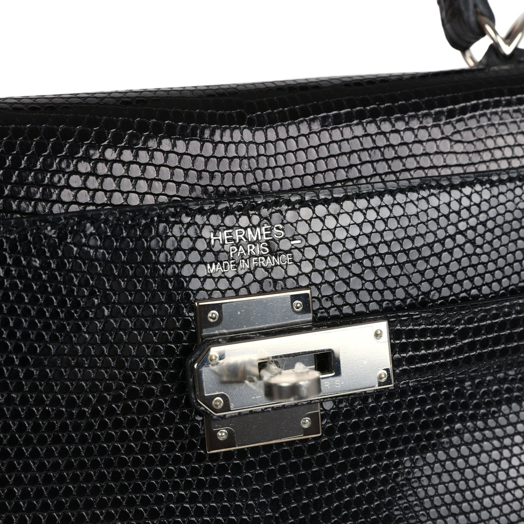 Hermes Kelly Retourne 35 Black Varanus Niloticus Lizard Palladium Hardware