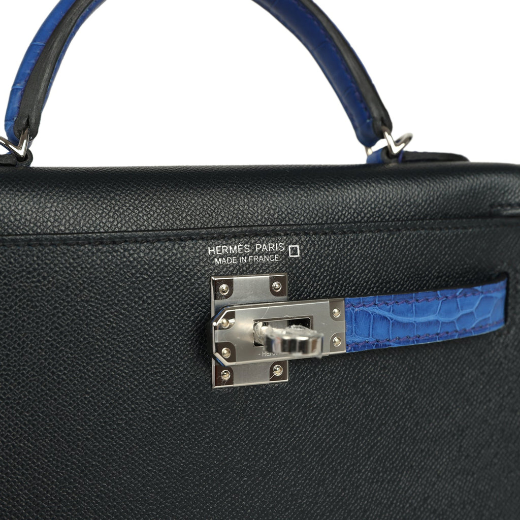 Hermes Kelly Sellier 20 Bleu De Minuit Madame and Bleu Electric Matte Alligator Mississippiensis Touch Palladium Hardware