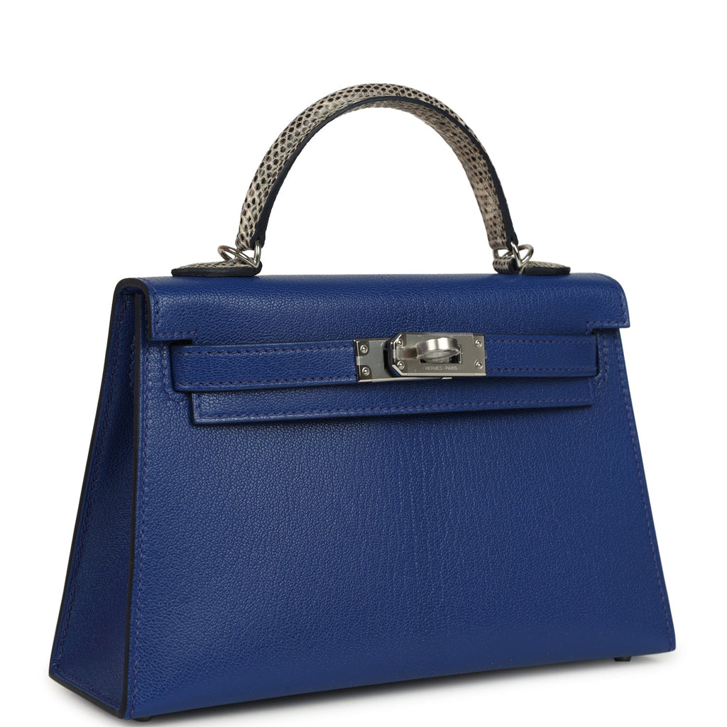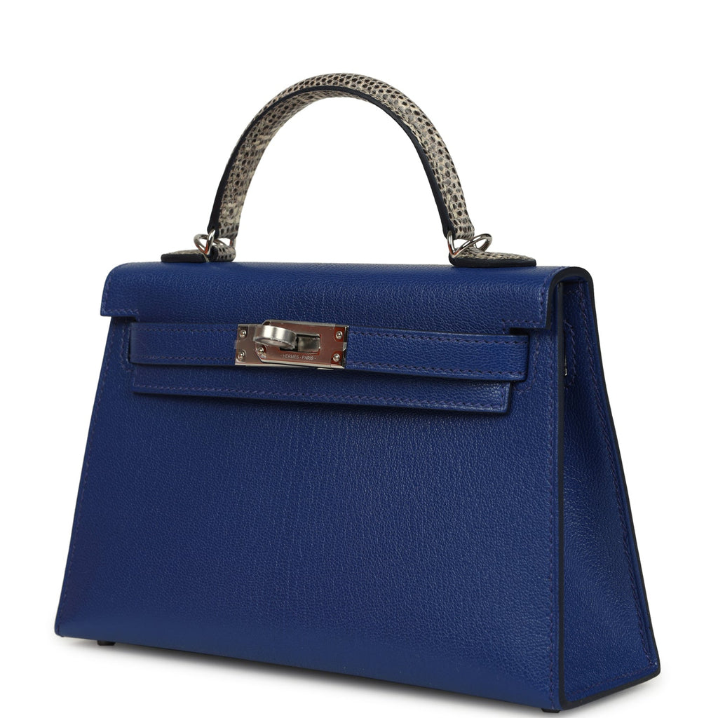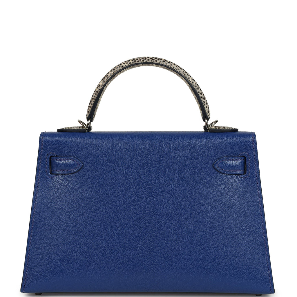 Hermes Kelly Sellier 20 Bleu Royal Chevre Chamkila and Ombre Varanus Salvator Lizard Touch Palladium Hardware