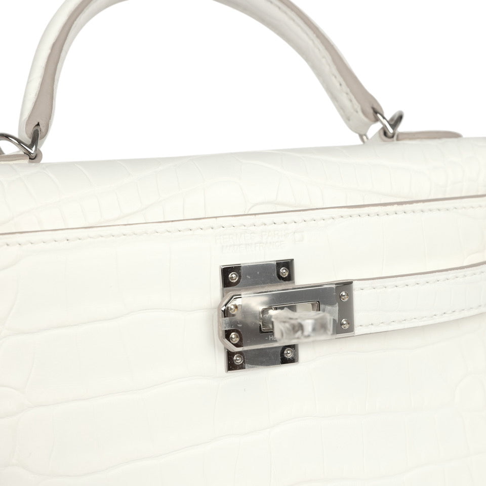 Hermes Kelly Sellier 20 Creme Chantilly Matte Alligator Palladium Hardware