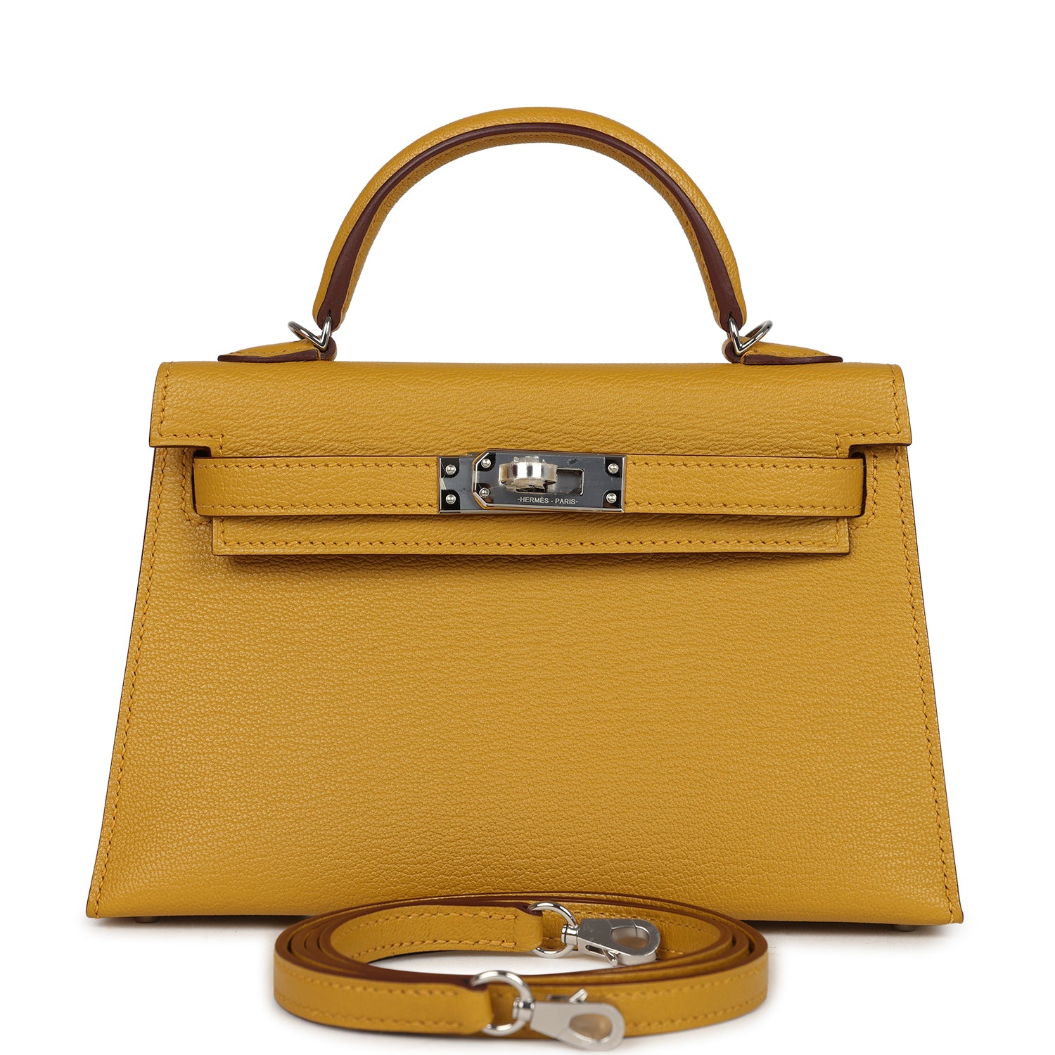 Hermes Kelly Sellier 20 Jaune Ambre Verso Chèvre Mysore Palladium Hardware