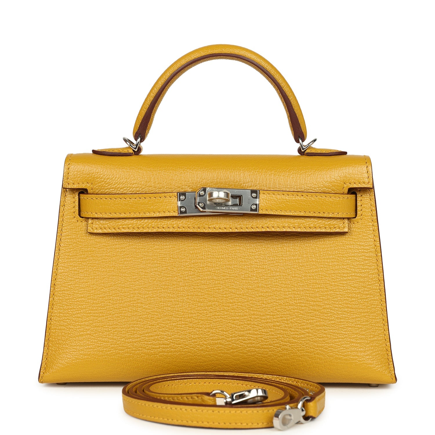 Hermes Kelly Sellier 20 Jaune Ambre Verso Chèvre Mysore Palladium Hardware