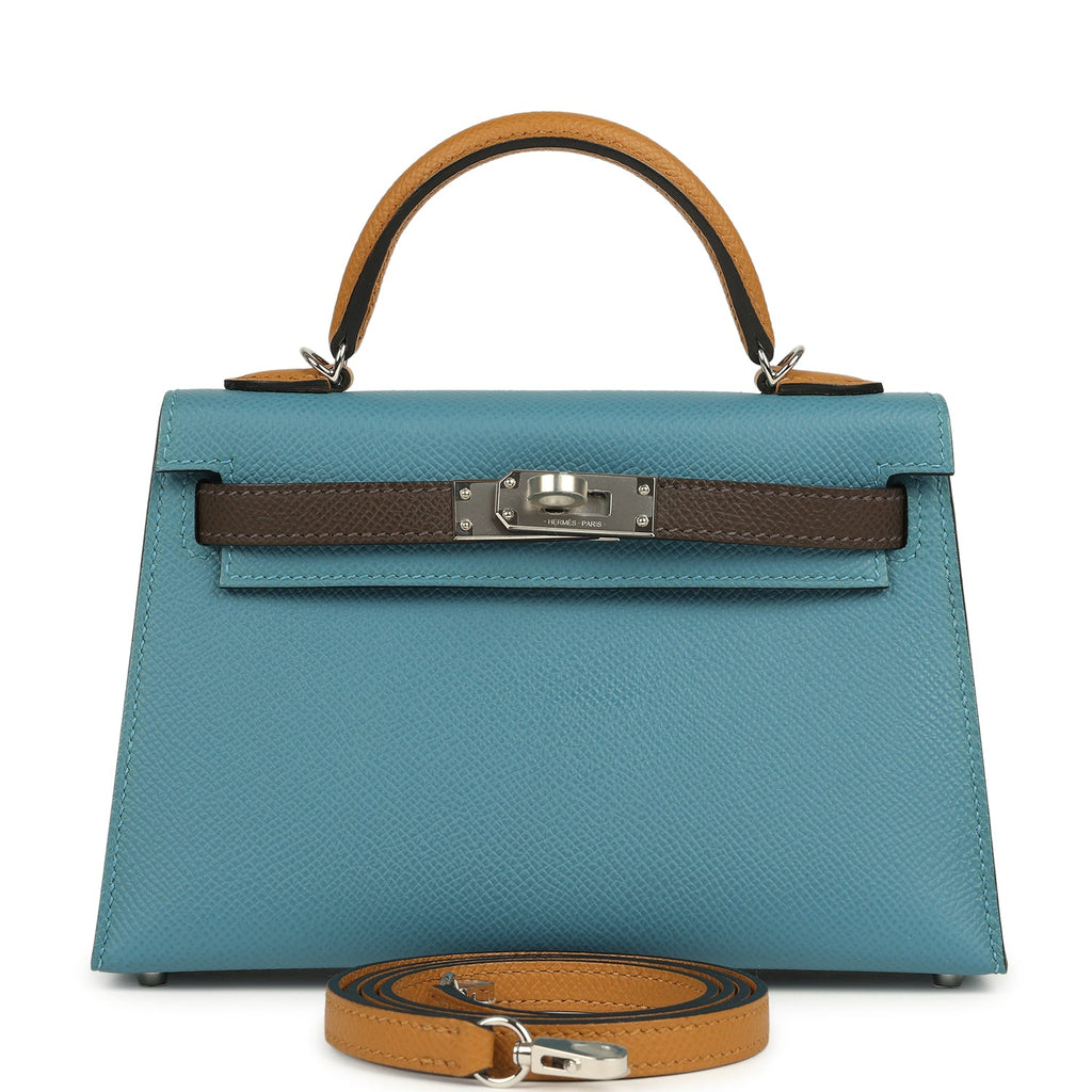 Hermes Kelly Sellier 20 Tri-color Blue Jean, Sesame and Ecorce Epsom Palladium Hardware
