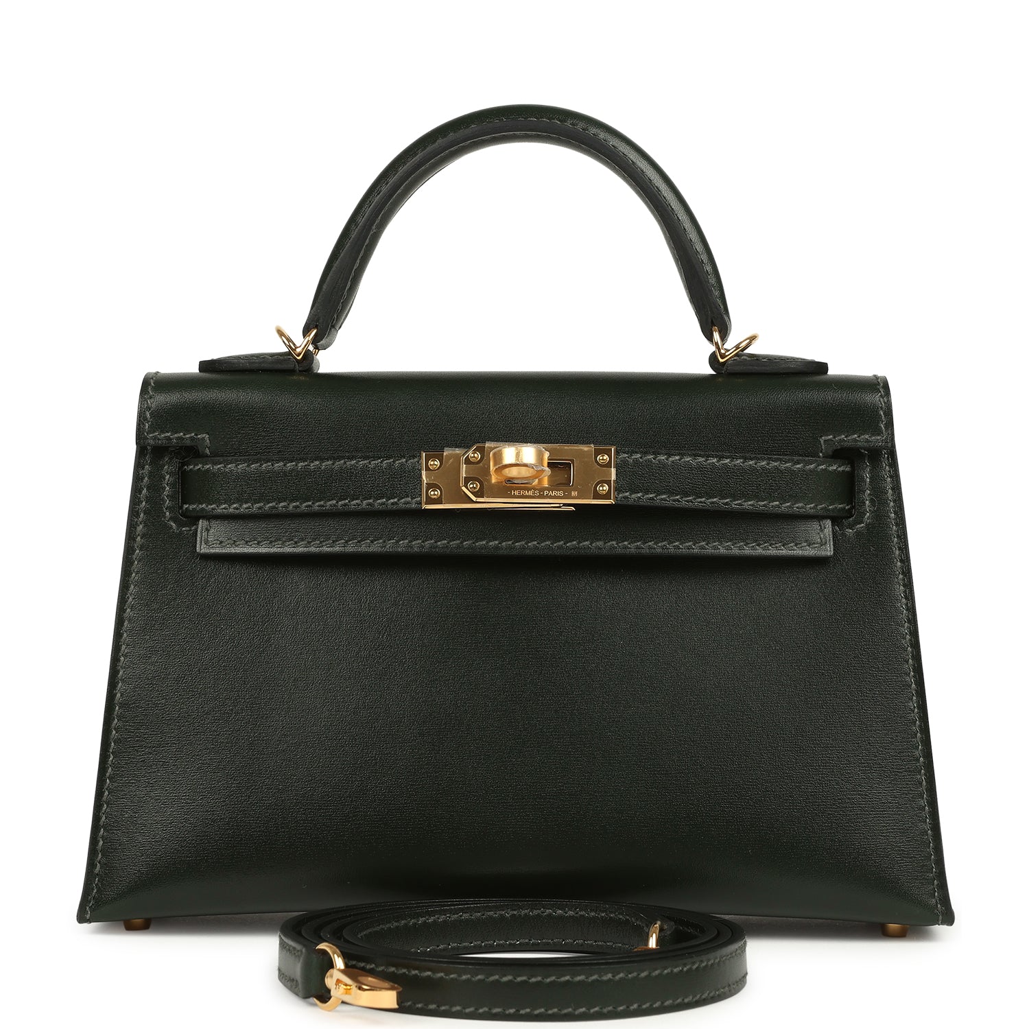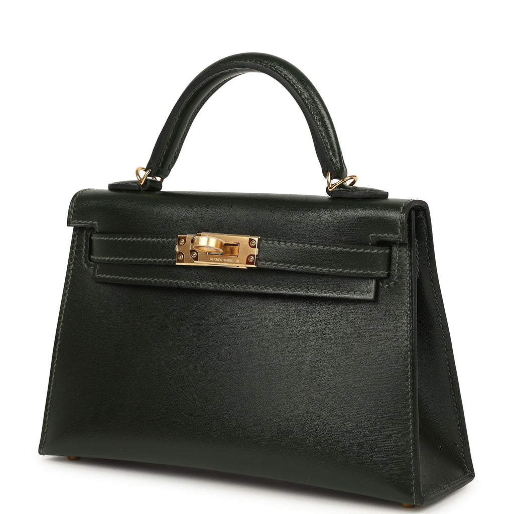 Hermes Kelly Sellier 20 Vert Fonce Box Gold Hardware