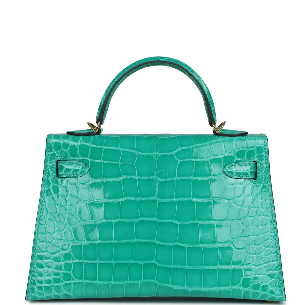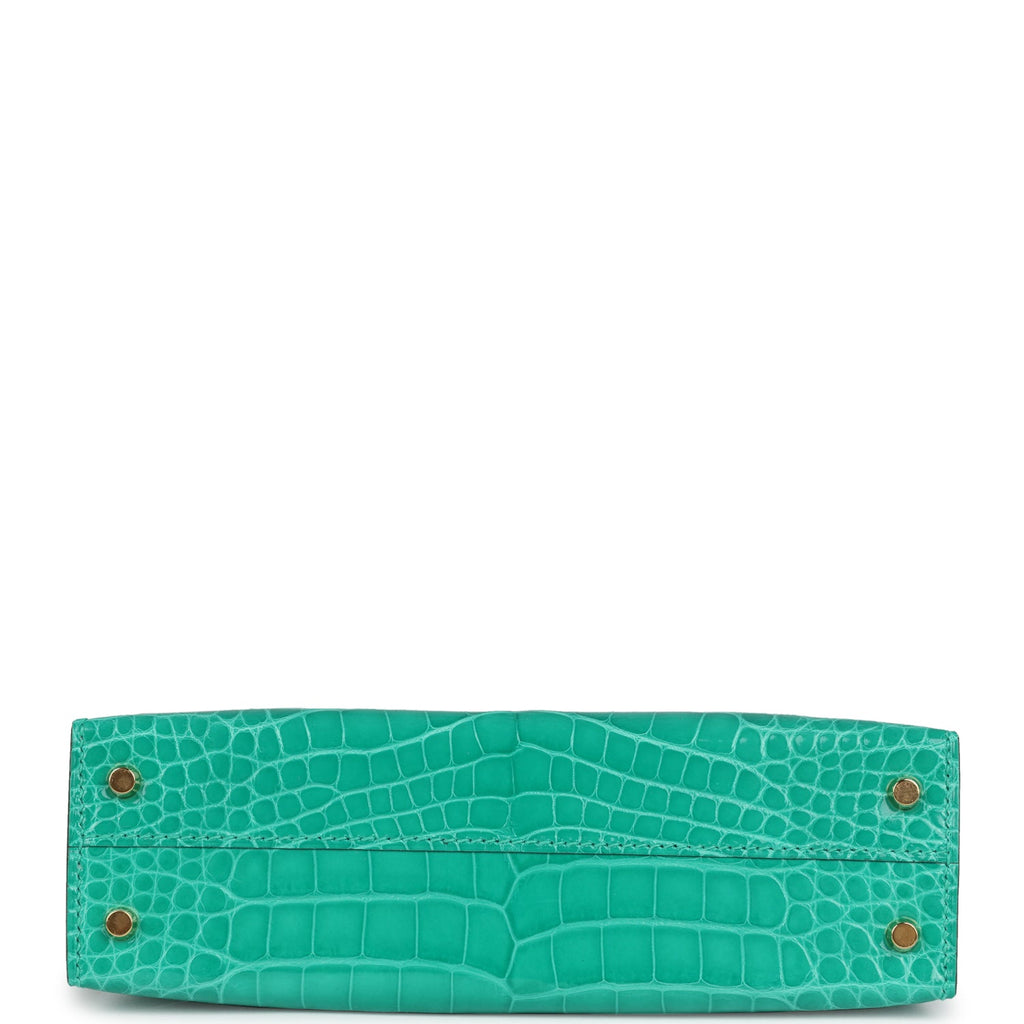 Hermes Kelly Sellier 20 Vert Jade Shiny Alligator Gold Hardware