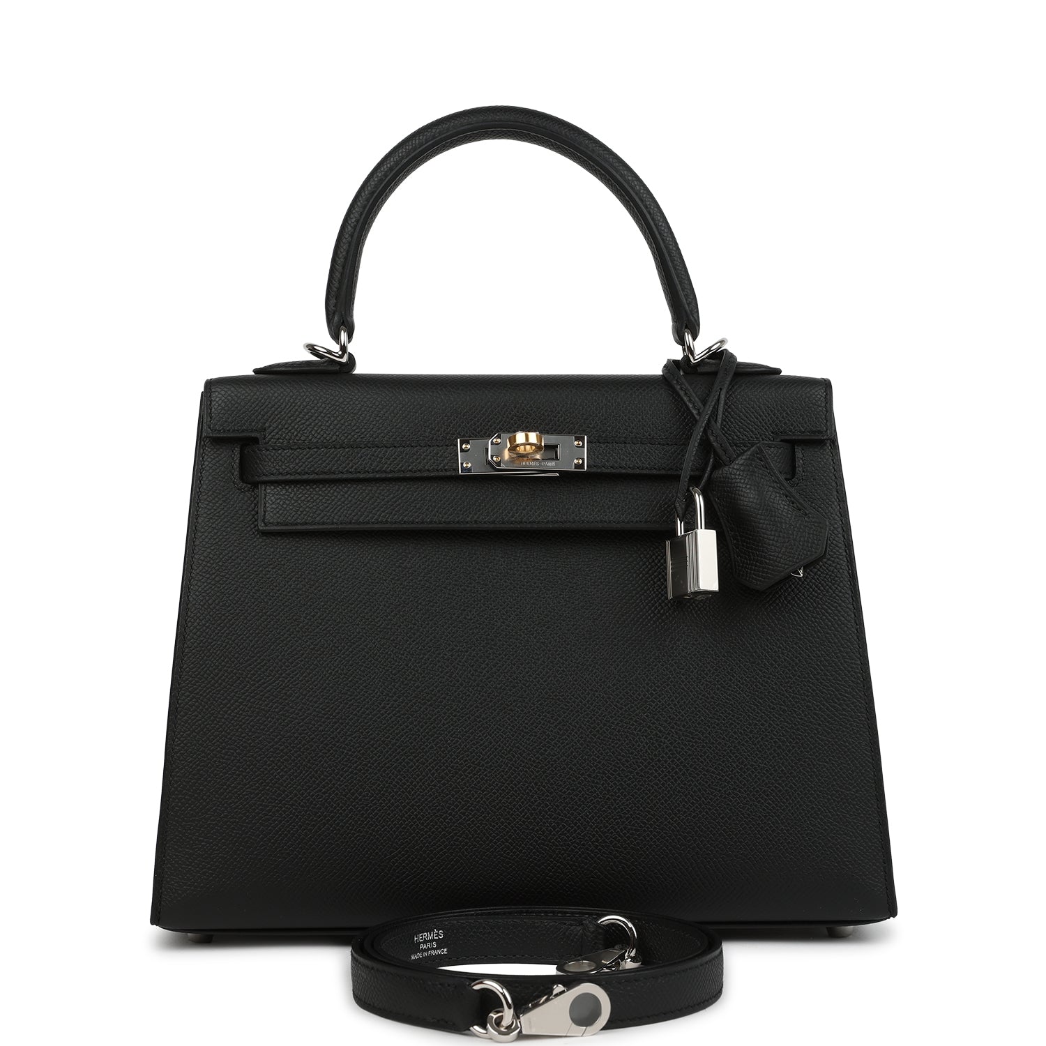 Hermes Kelly Sellier 25 Black Epsom Electrum Hardware
