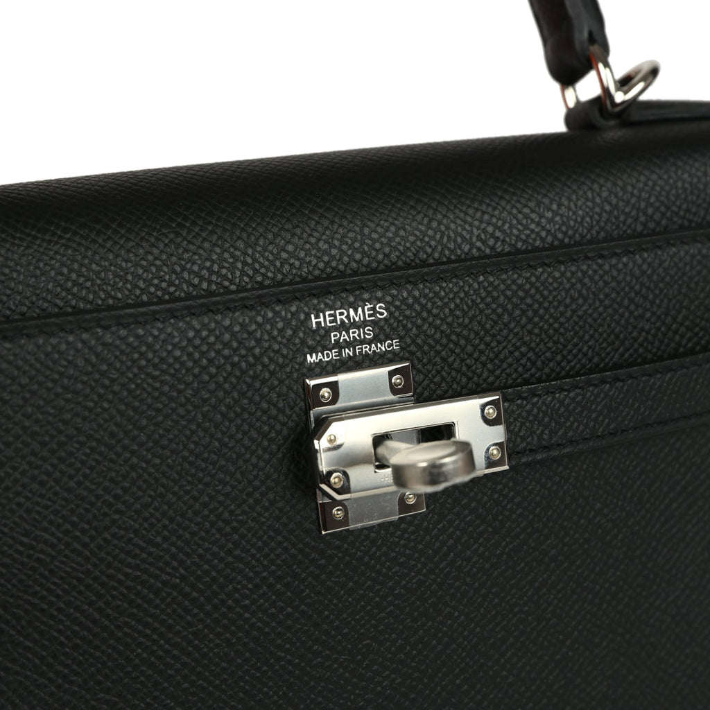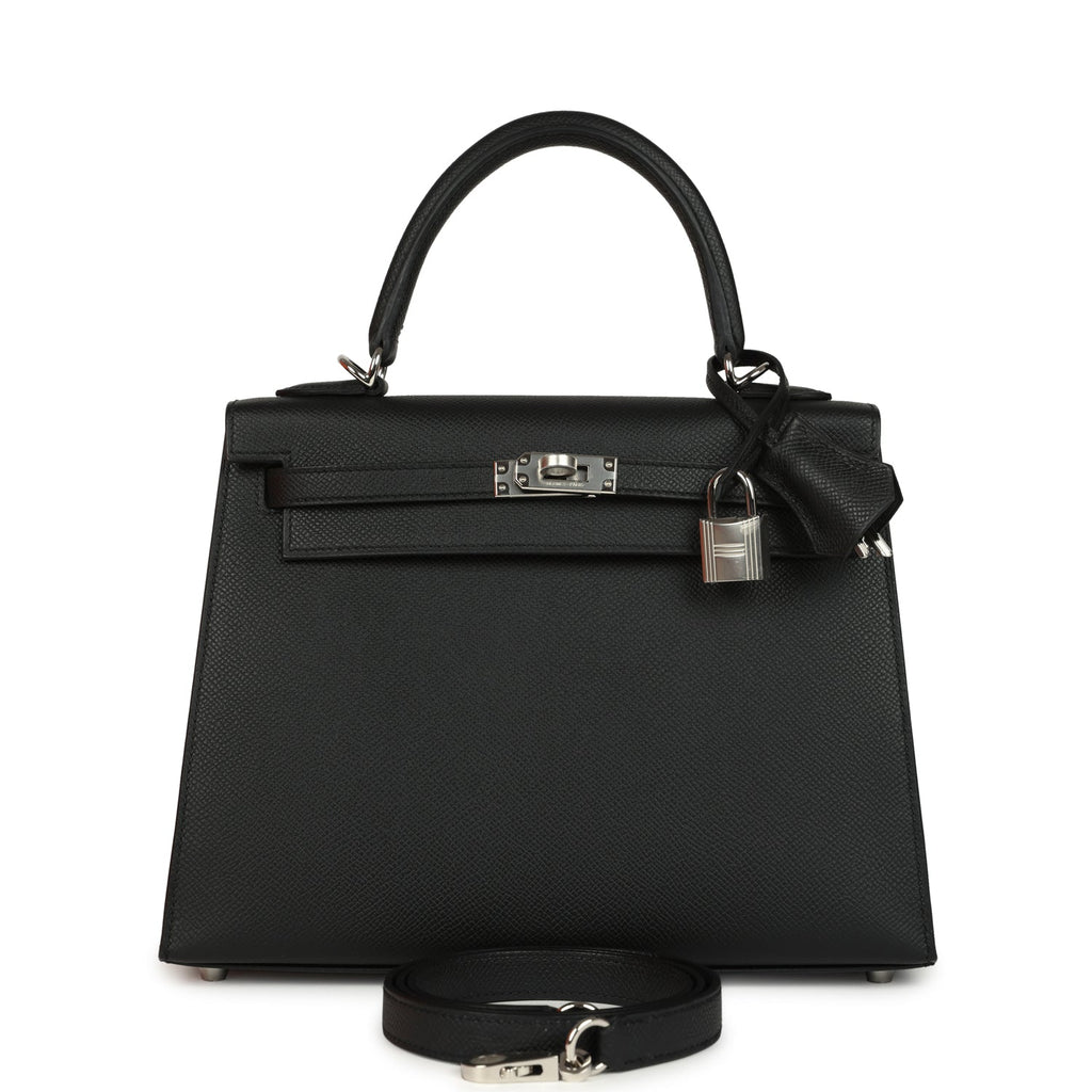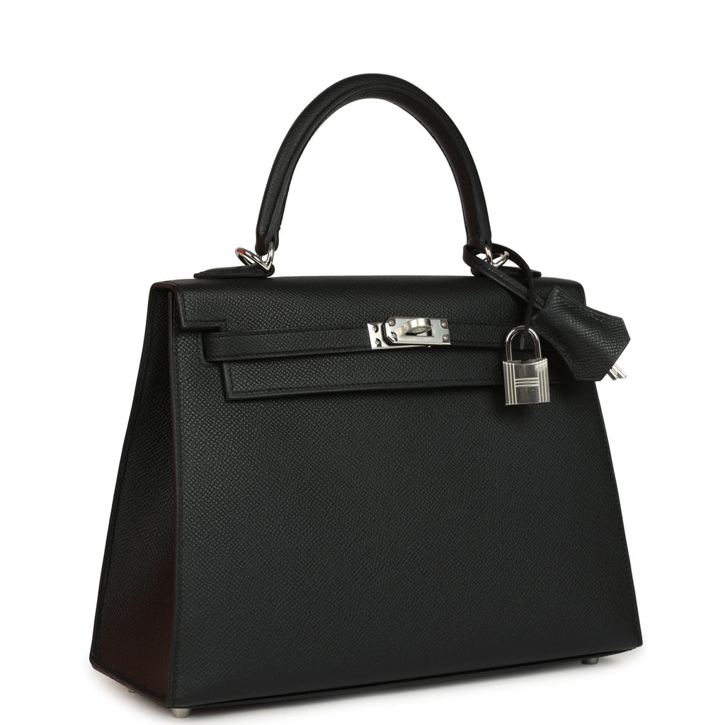 Hermes Kelly Sellier 25 Black Epsom Palladium Hardware