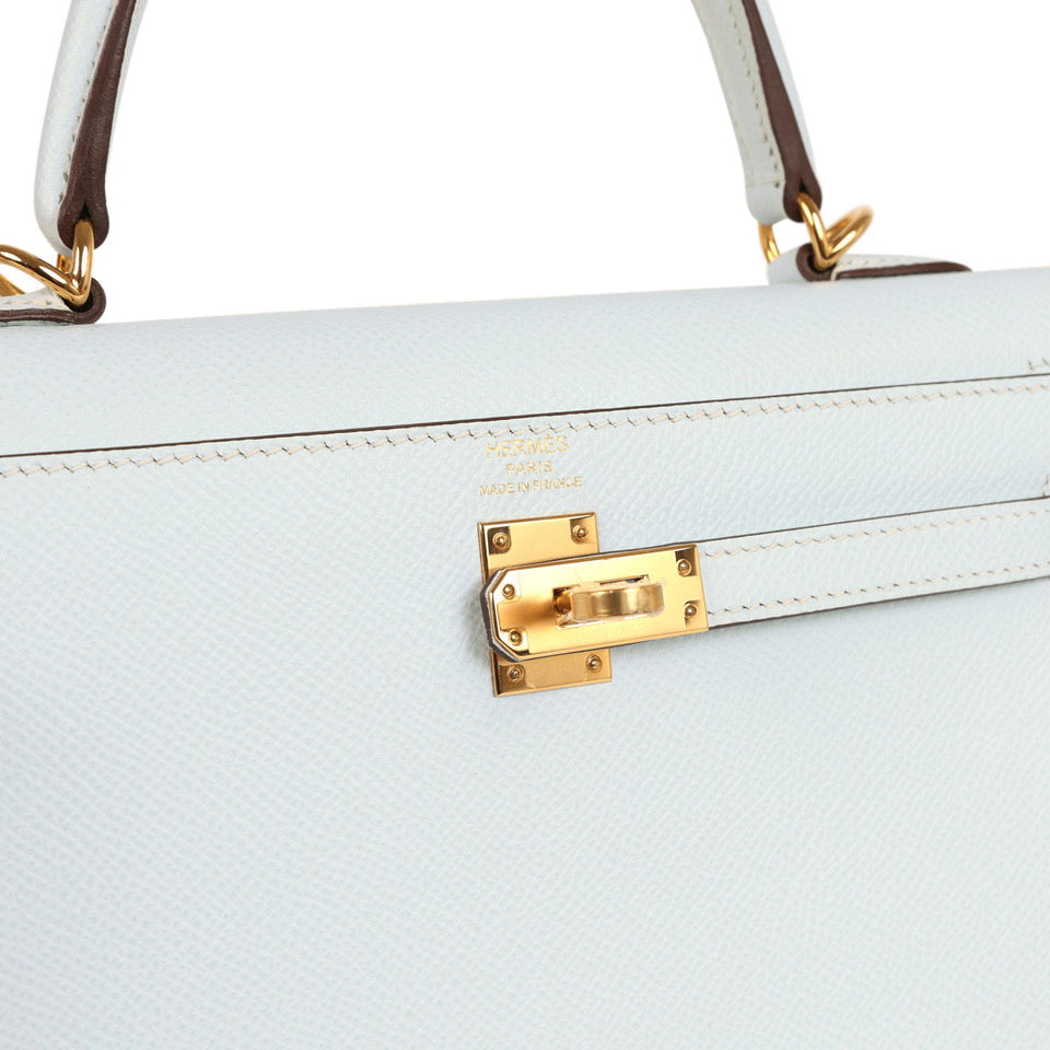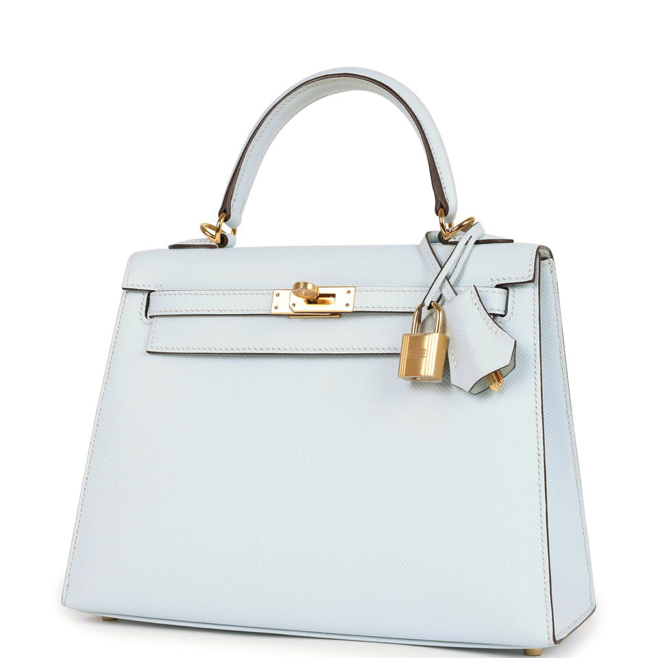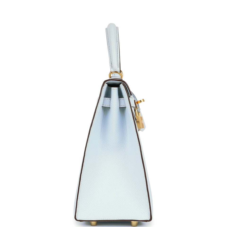 Hermes Kelly Sellier 25 Bleu Brume Epsom Gold Hardware