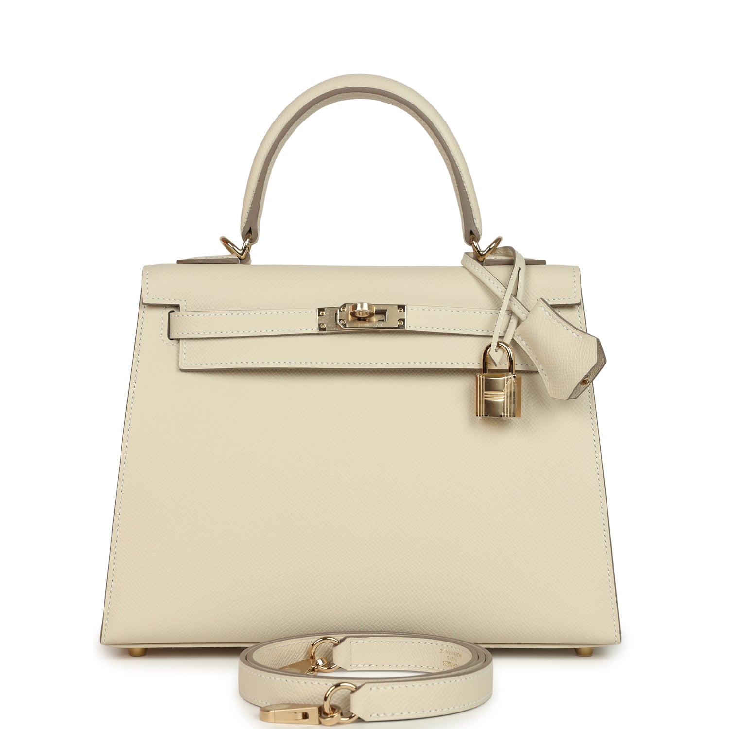 Hermes Kelly Sellier 25 Craie Epsom Permabrass Hardware
