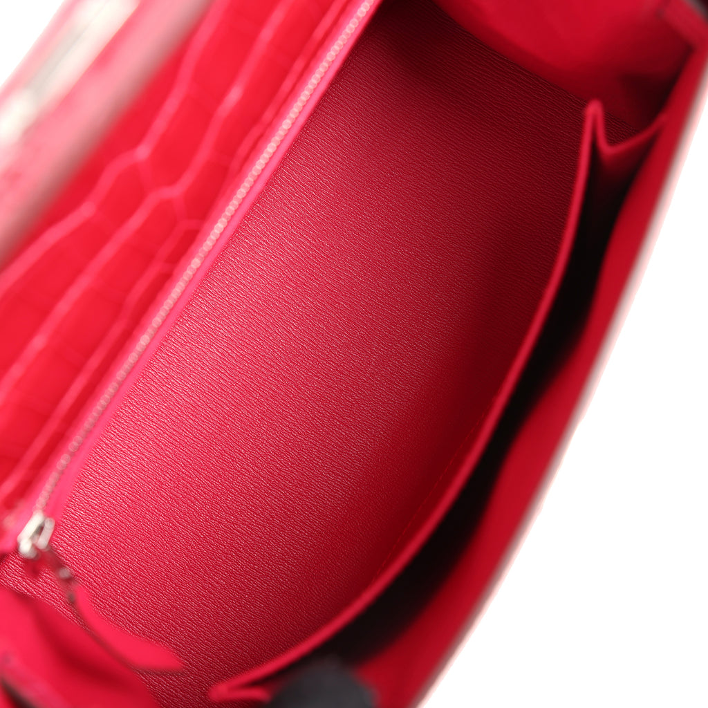 Hermes Kelly Sellier 25 Rose Extreme Shiny Alligator Palladium Hardware