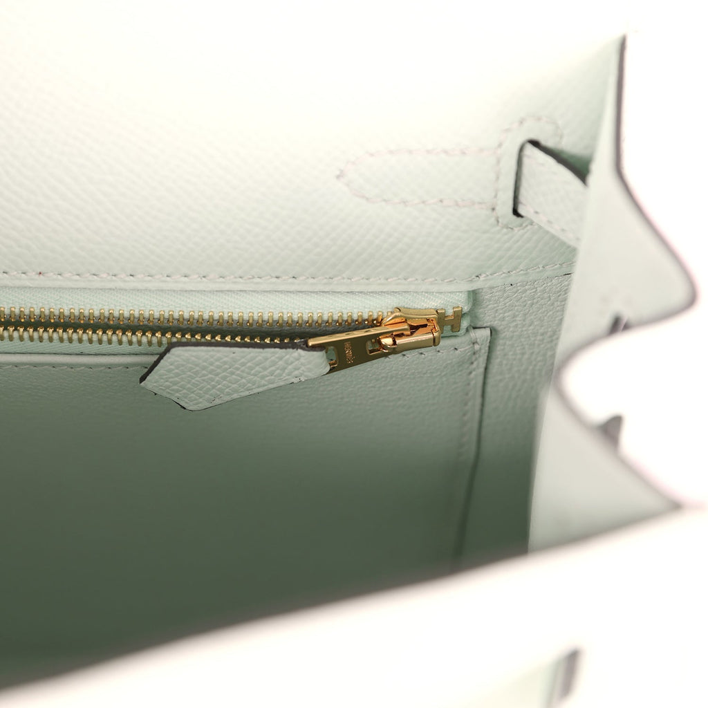 Hermes Kelly Sellier 25 Vert Peppermint Epsom Permabrass Hardware