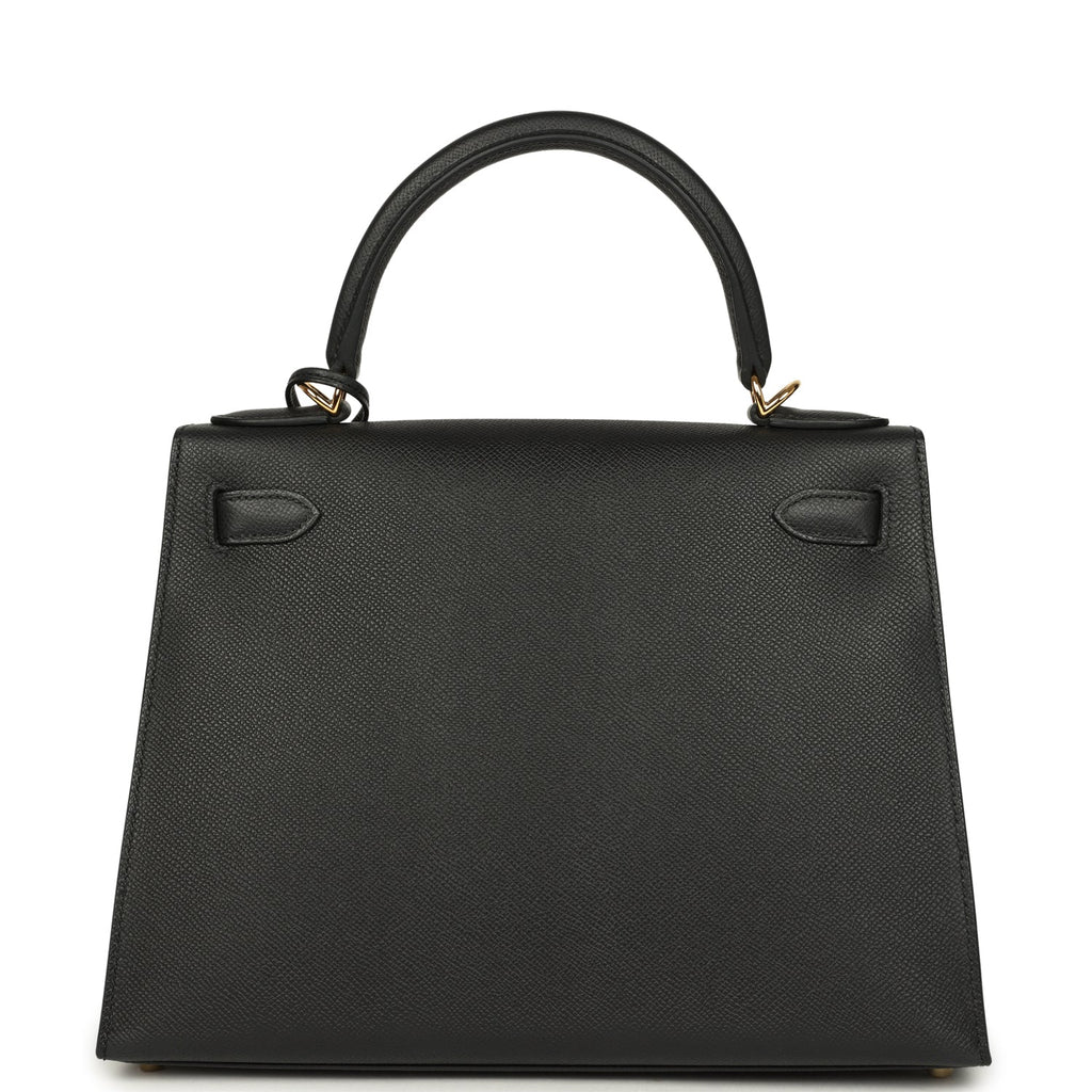 Hermes Kelly Sellier 28 Black Epsom Gold Hardware