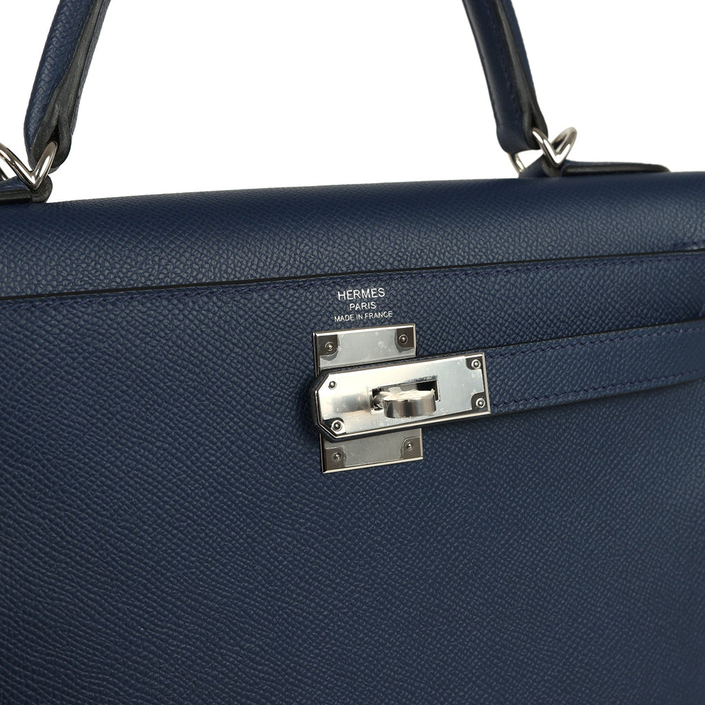 Hermes Kelly Sellier 28 Bleu Navy Epsom Palladium Hardware