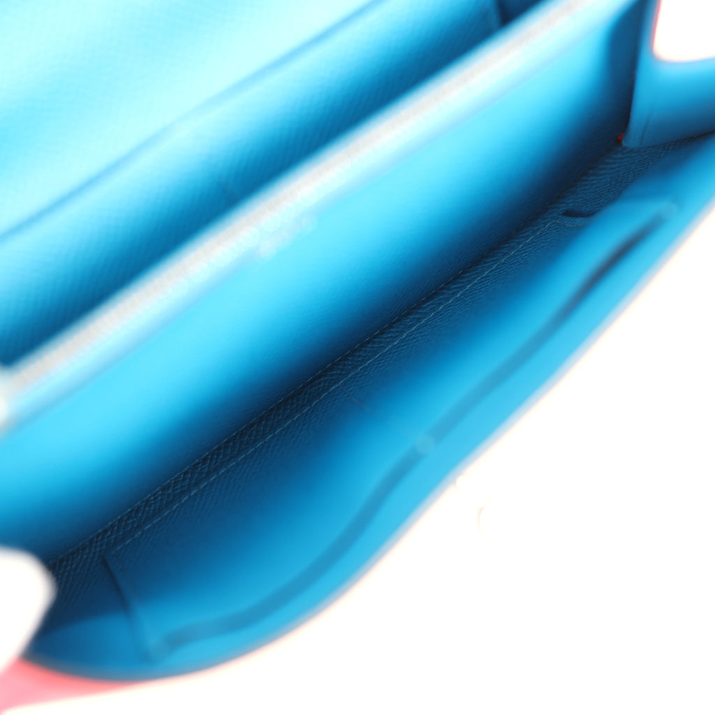 Hermes Kelly Wallet To Go Casaque Rouge De Coeur, Rose Extreme and Bleu Zanzibar Epsom Palladium Hardware