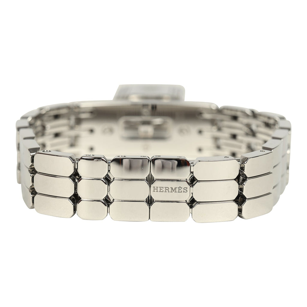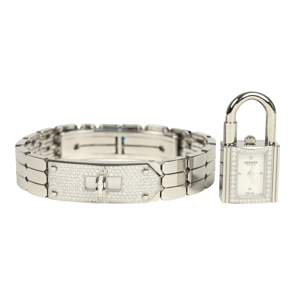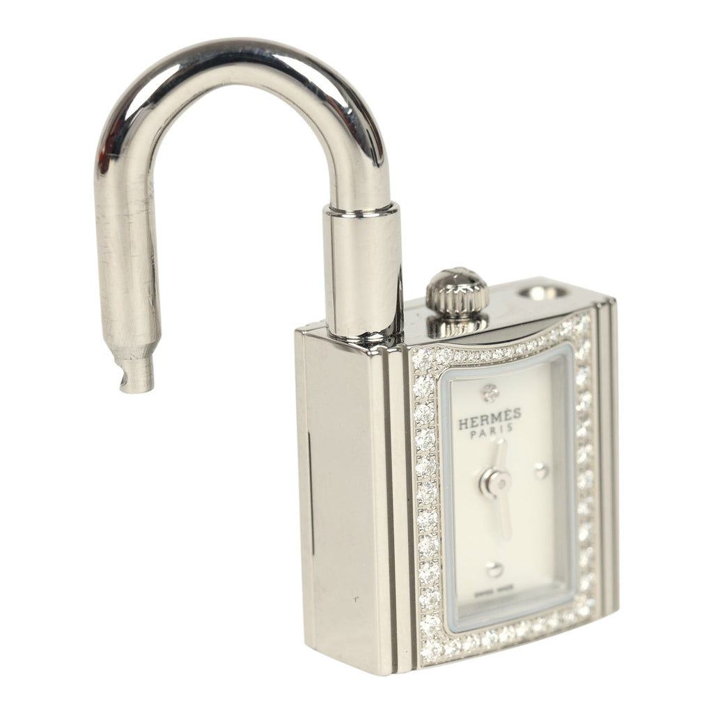 Hermes Kelly Watch Mini Model 16mm White Mother of Pearl, Stainless Steel Hardware and White Diamonds