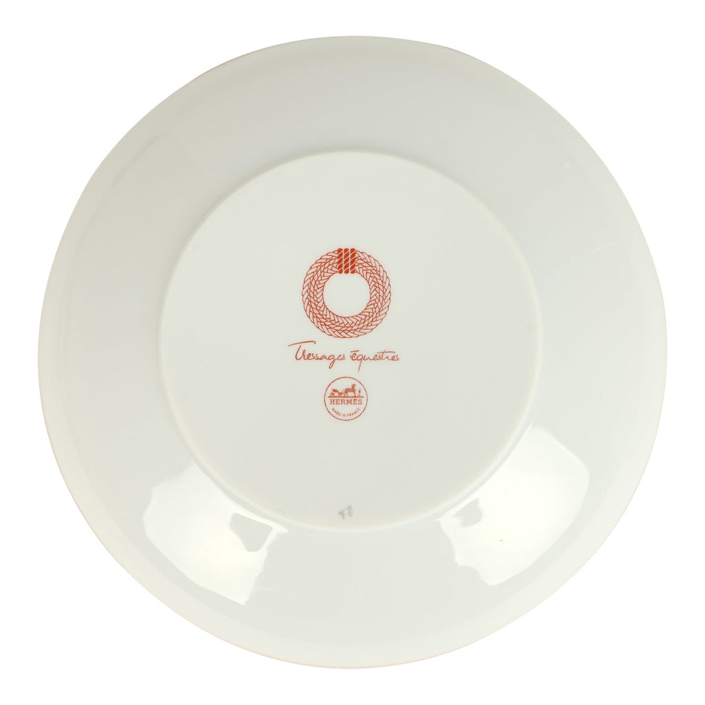Hermes Medium "Tressages Equestres" Orange, White and Blue Porcelain Hollow Plate Set of 2