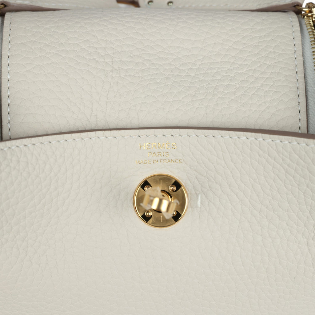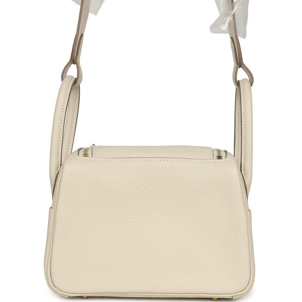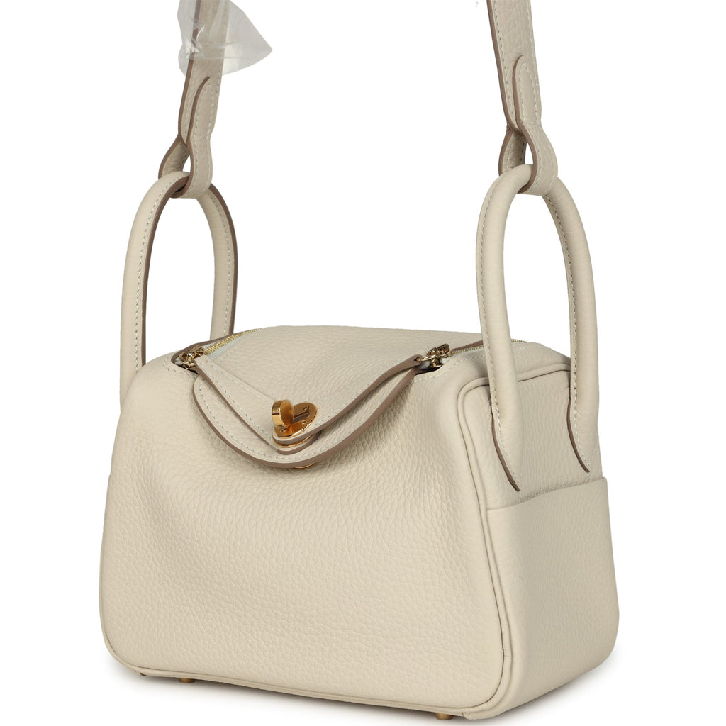 Hermes Mini Lindy II Craie Clemence Gold Hardware
