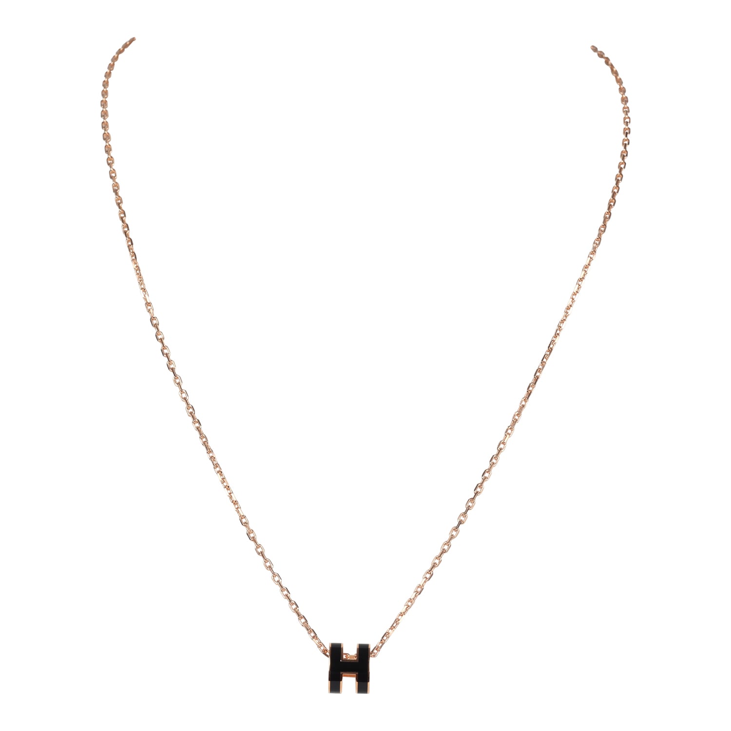 Hermes Mini Pop H Pendant Necklace Black Enamel Lacquered Rose Gold Hardware