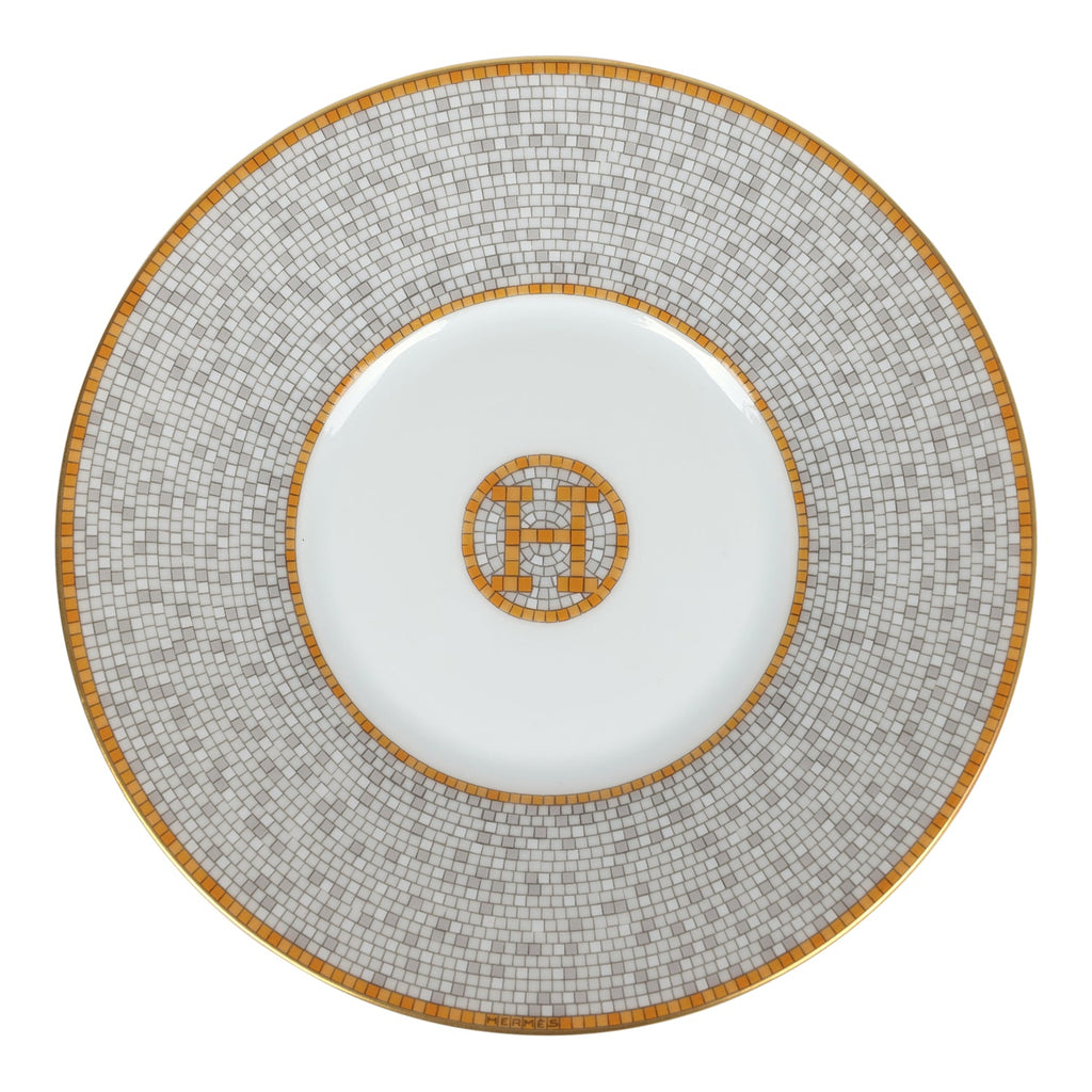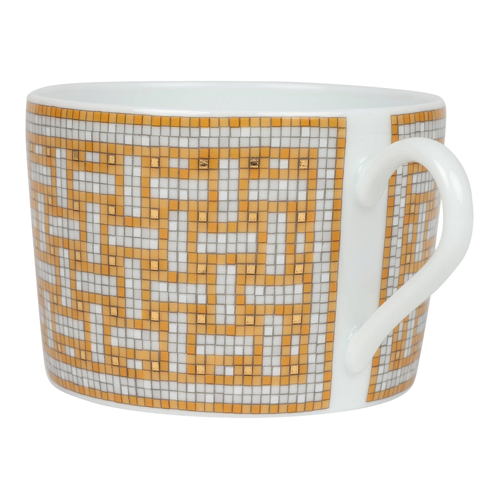 Hermes "Mosaique Au 24" White & Gold Porcelain Tea Cup and Saucer Set