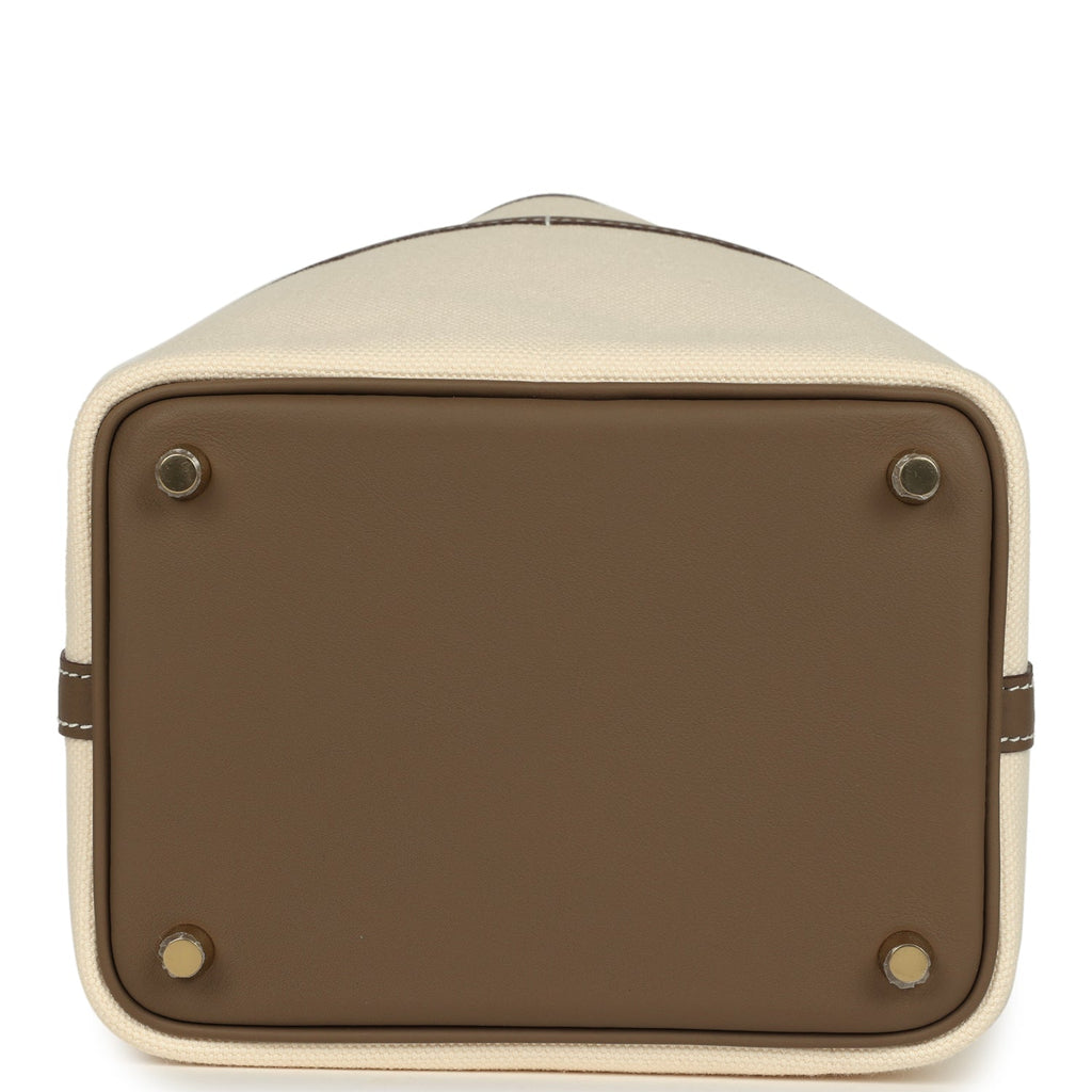 Hermes Picotin Cargo 18 Ecru Toile Canvas and Etoupe Swift Gold Hardware