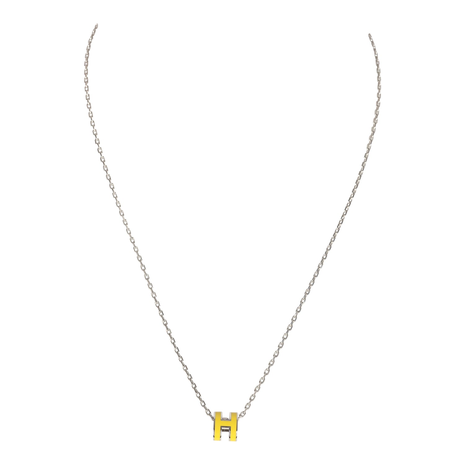 Hermes Mini Pop H Pendant Necklace New Lime Enamel Lacquered Palladium Hardware