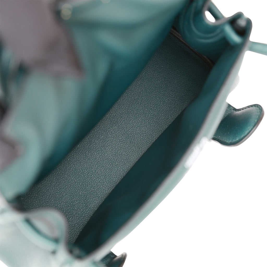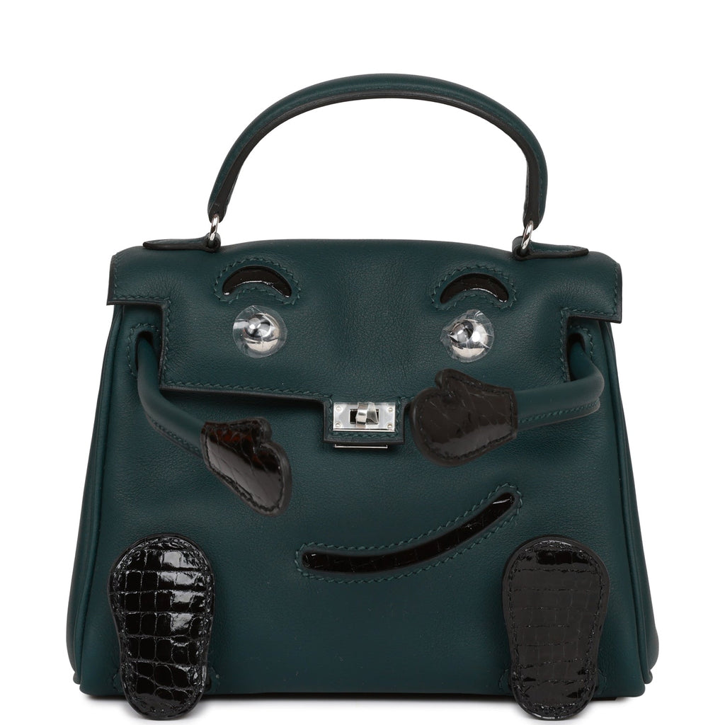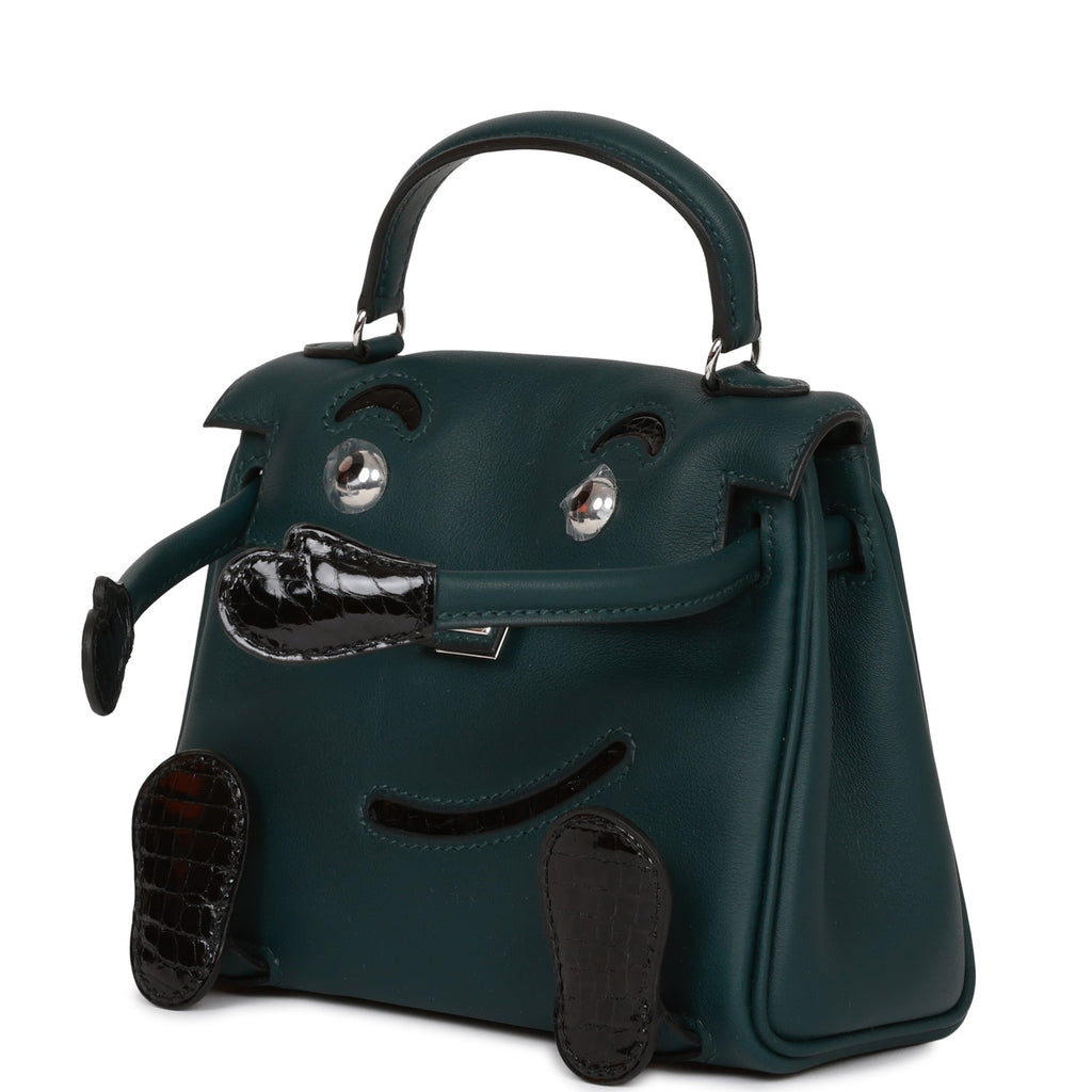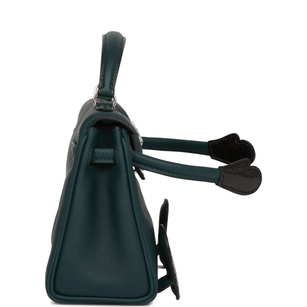 Hermes "Quelle Idolle" Kelly Doll Touch Vert Cypress Swift and Black Shiny Alligator Palladium Hardware