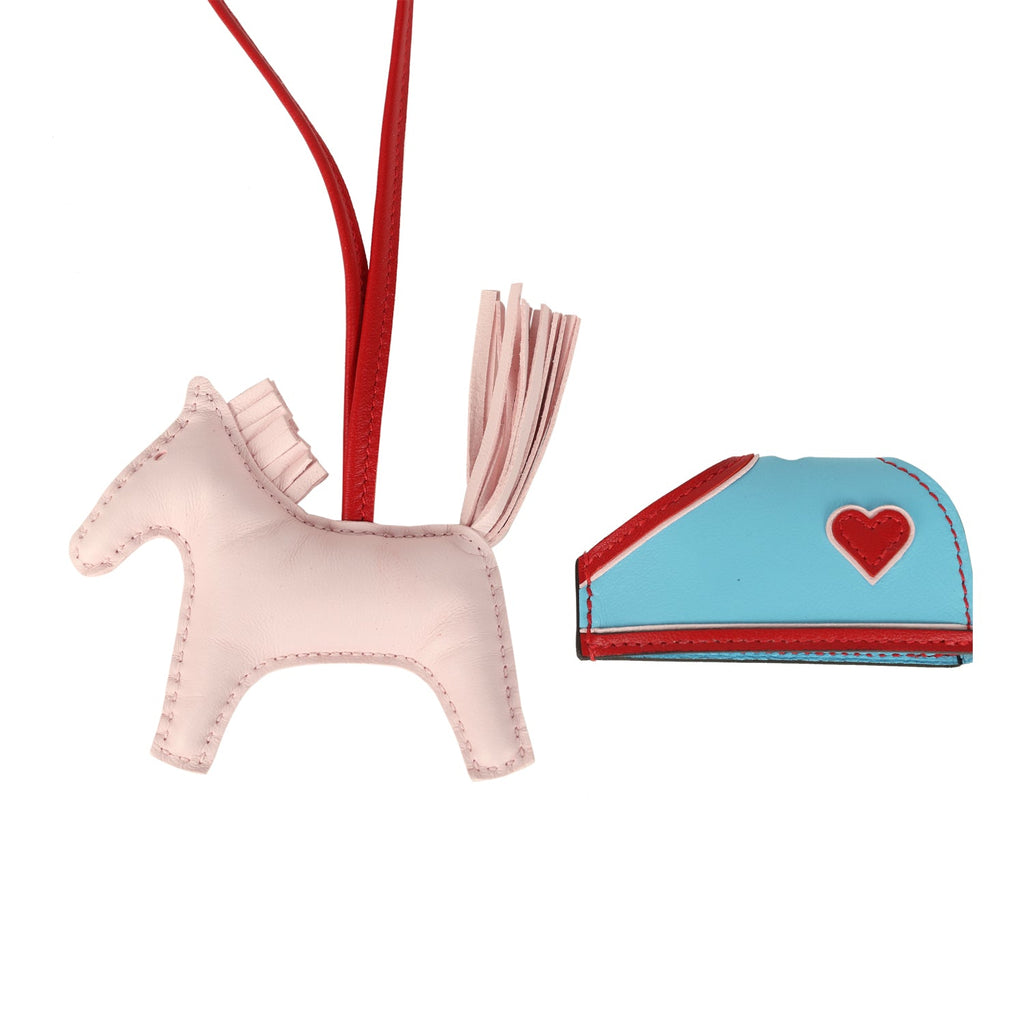 Hermes Rodeo Robeo Coeur Charm PM Rose Darling, Bleu Celeste & Rouge Radieux Milo Lambskin