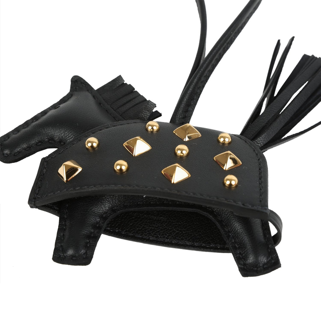 Hermes Rodeo Rock Bag Charm PM Black Milo Lambskin Gold Hardware