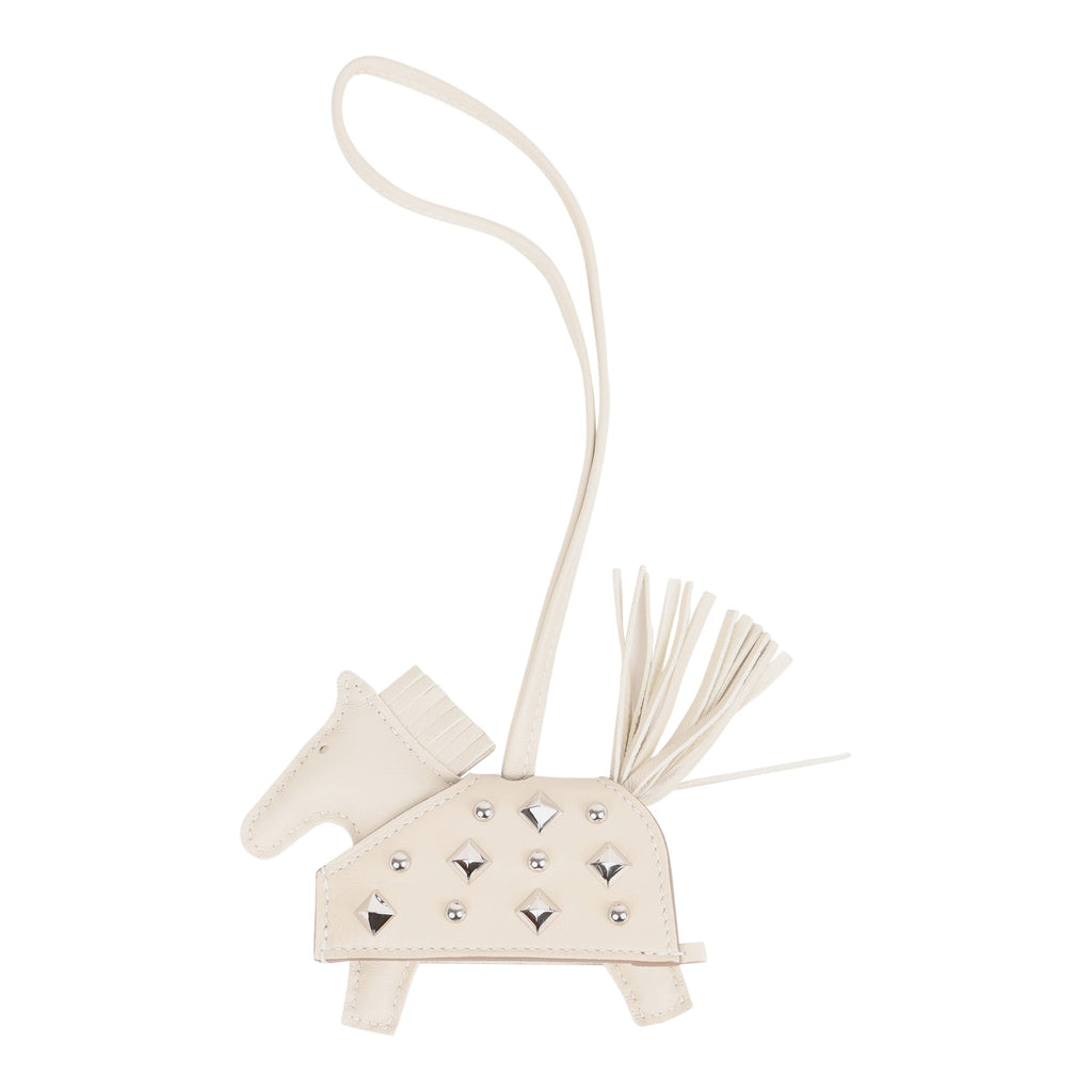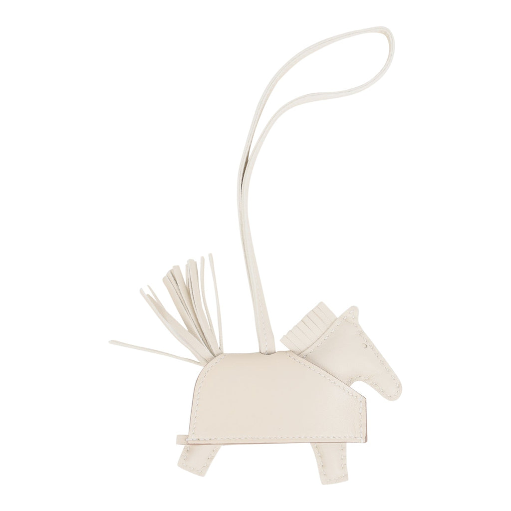 Hermes Rodeo Rock Bag Charm PM Craie Milo Lambskin Palladium Hardware