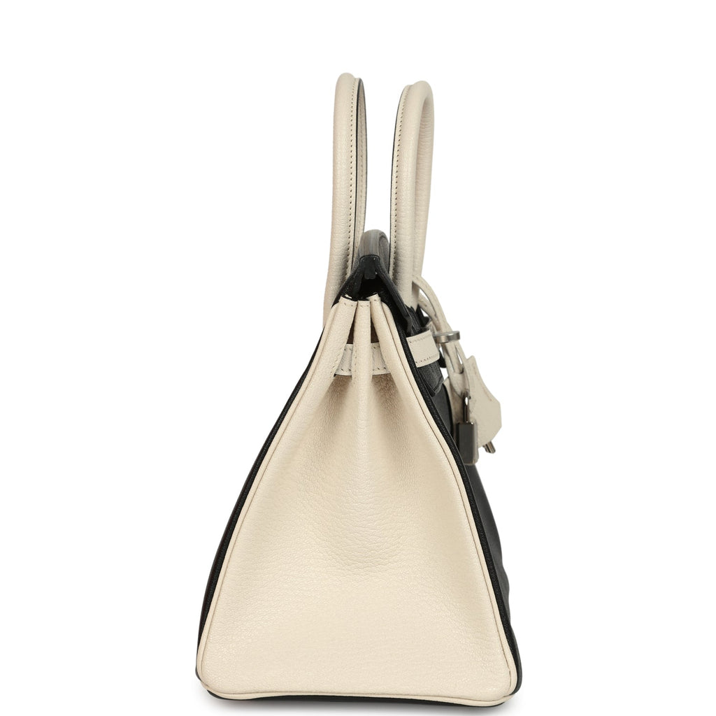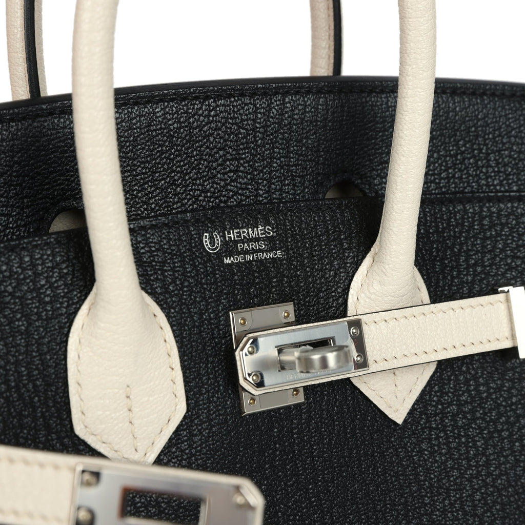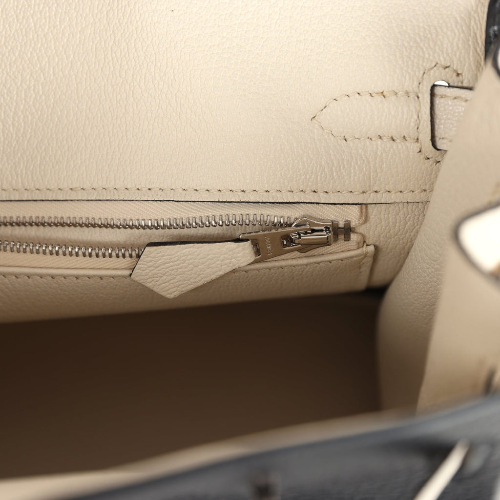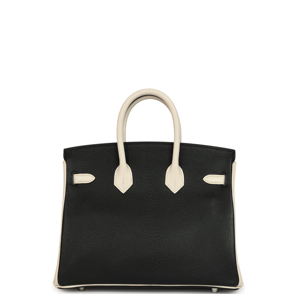 Hermes Special Order (HSS) Birkin 25 Bi-Color Black and Nata Chevre Mysore Palladium Hardware
