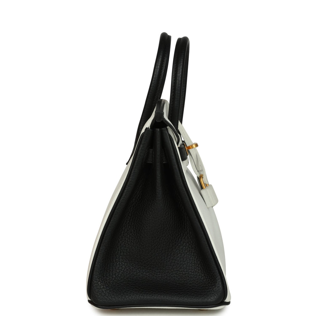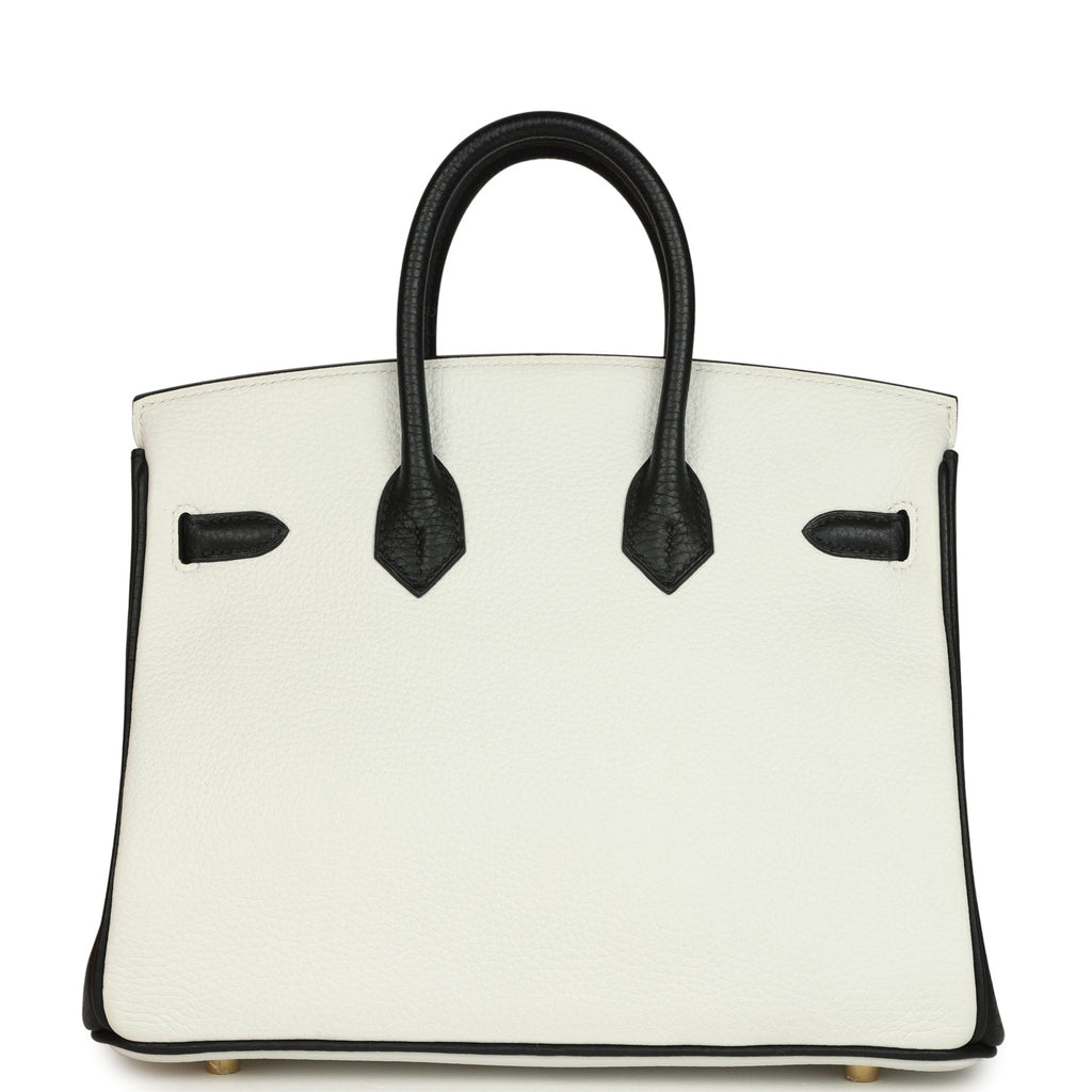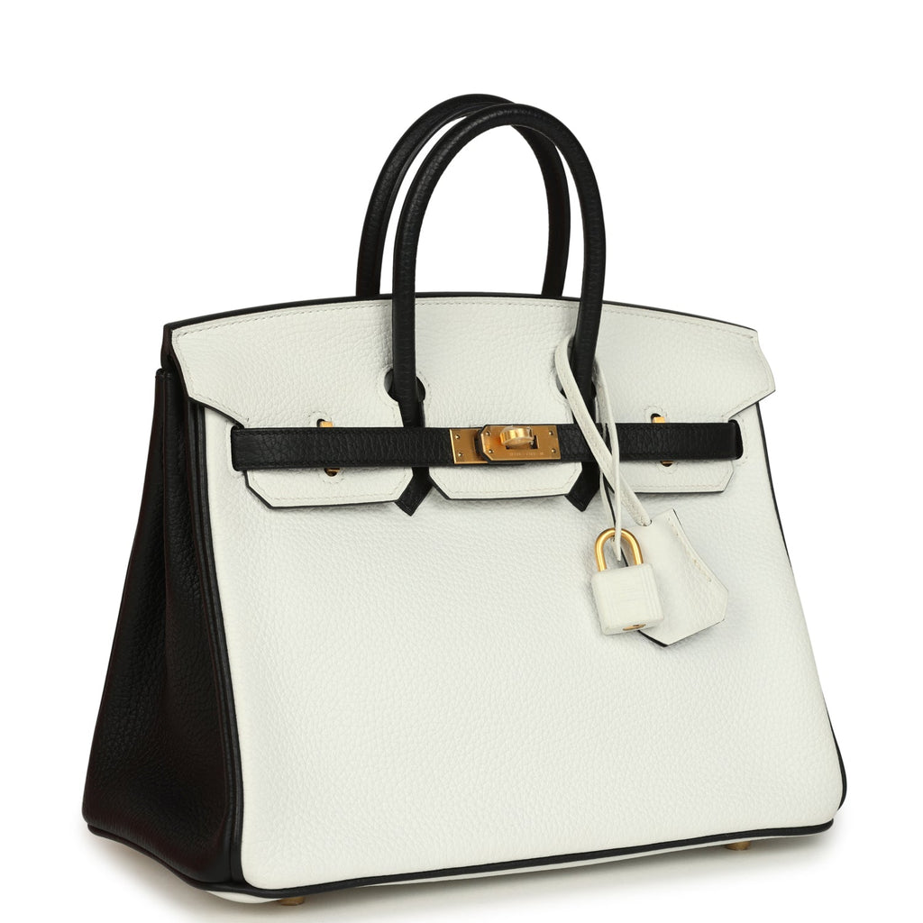 Hermes Special Order (HSS) Birkin 25 Bi-Color White and Black Clemence Brushed Gold Hardware