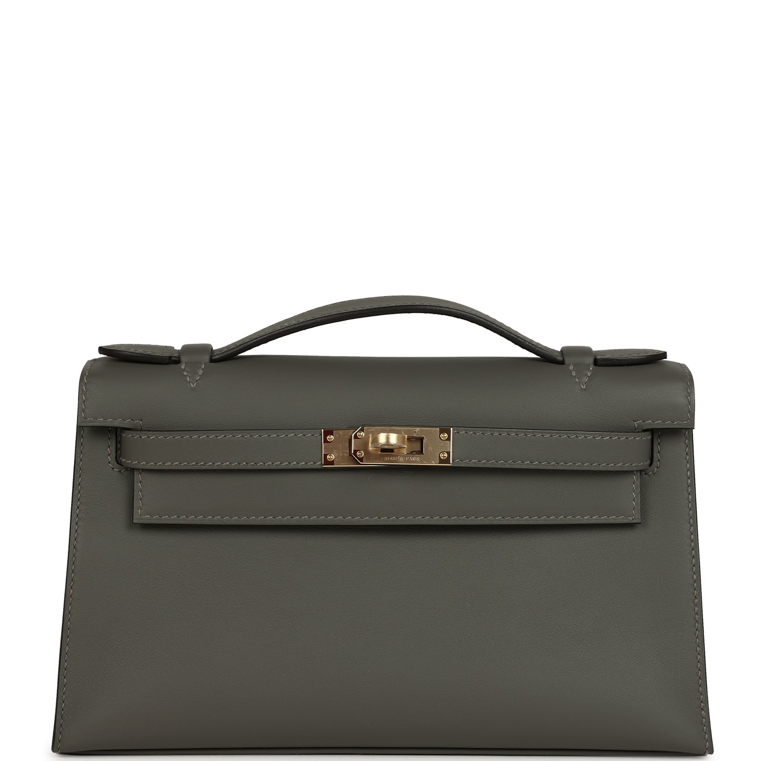 Hermes Special Order (HSS) Kelly Pochette Gris Meyer Verso Swift Permabrass Hardware