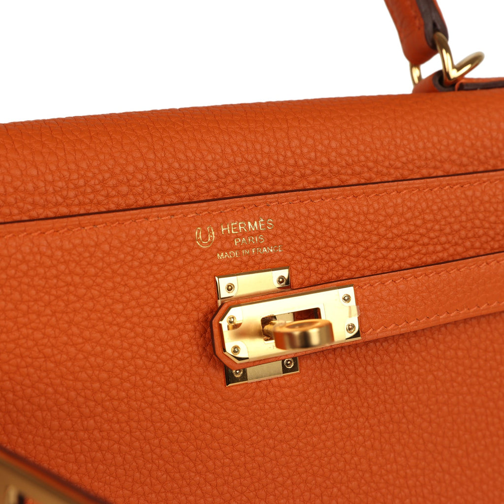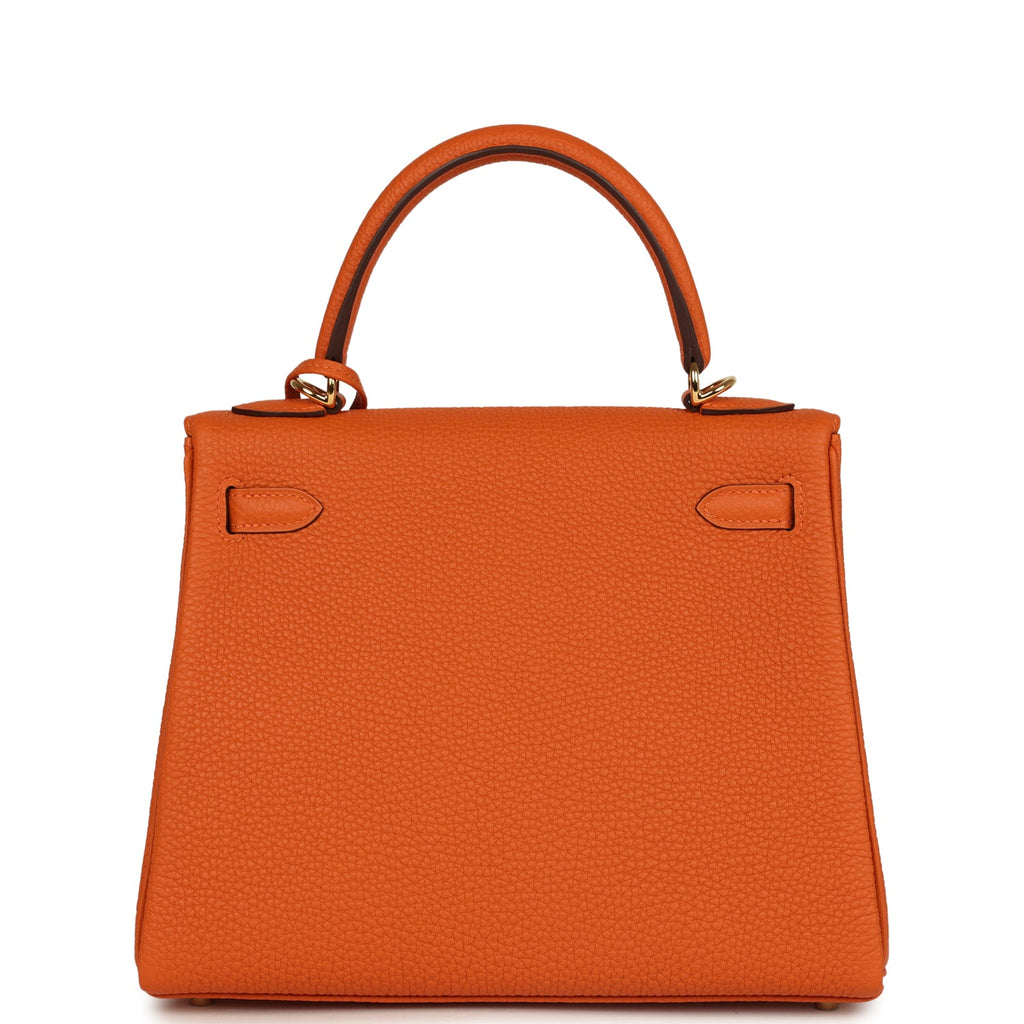 Hermes Special Order (HSS) Kelly Retourne 25 Orange Verso Togo Gold Hardware