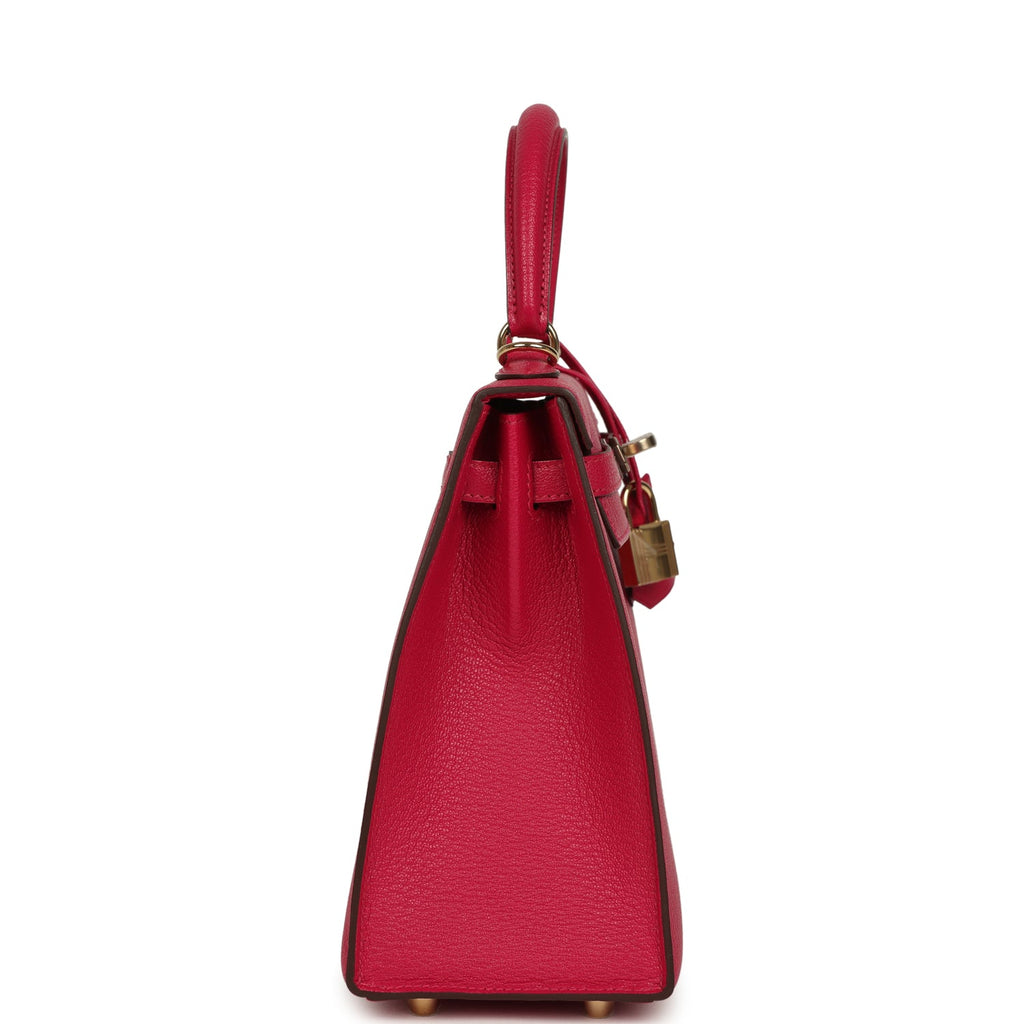 Hermes Special Order (HSS) Kelly Sellier 25 Rose Mexico Verso Chevre Mysore Permabrass Hardware